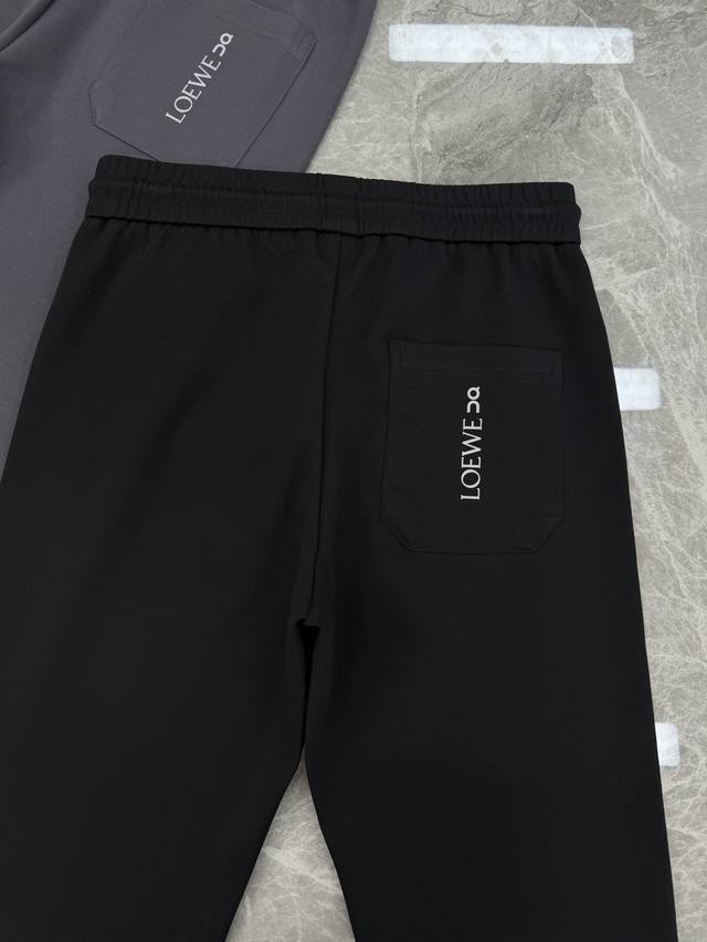 Loewe 25S New Anagram Casual Pants. New collaboration with Onprune. Slim straight leg design with elastic waistband. Made from premium Tencel fabric, soft, comfortable, and structured. Super comfortable and unrestricted wear. Features Loewe logo lettering below the pockets and a simple yet recognizable Loewe-Onprune logo on the back pocket, subtly showcasing the brand identity. Versatile for everyday casual wear or street style, easily adaptable to various occasions. Colors: Black, Gray. Sizes: M-3XL (29-36 cm, 175cm, 140kg recommended size: L).
