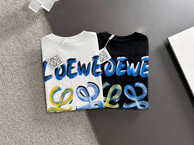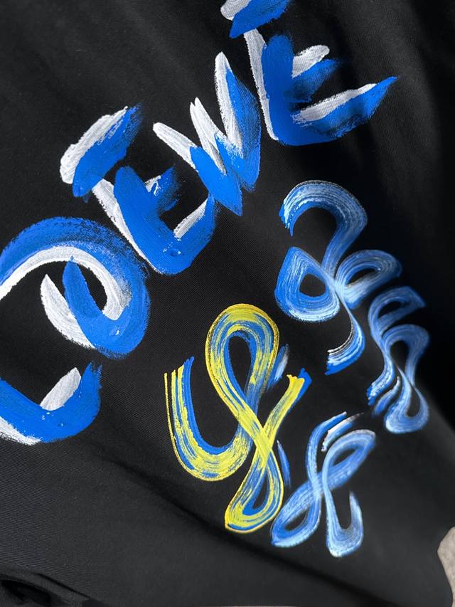 Loewe hand-painted 25Ss new spring and summer models are launched in the counter. The latest short-sleeved round neck T-shirt is high-end custom-made and avant-garde and fashionable! Brand Logo, heavy craftsmanship design, high-end custom-made 230g fabric. Soft to the touch. Comfortable to wear. Exquisite stitching at the counter level. Color: black. White. Size: S-2Xl