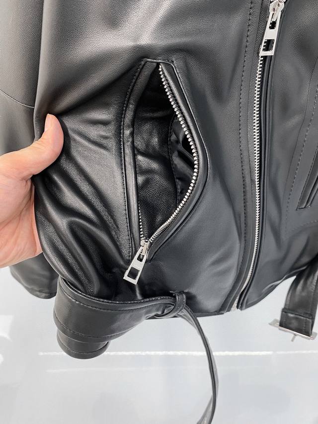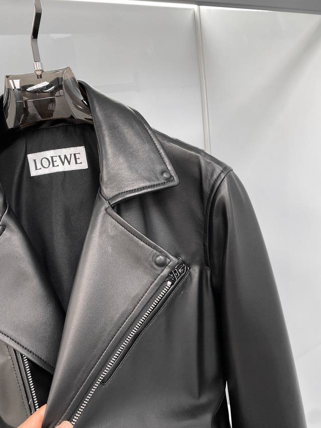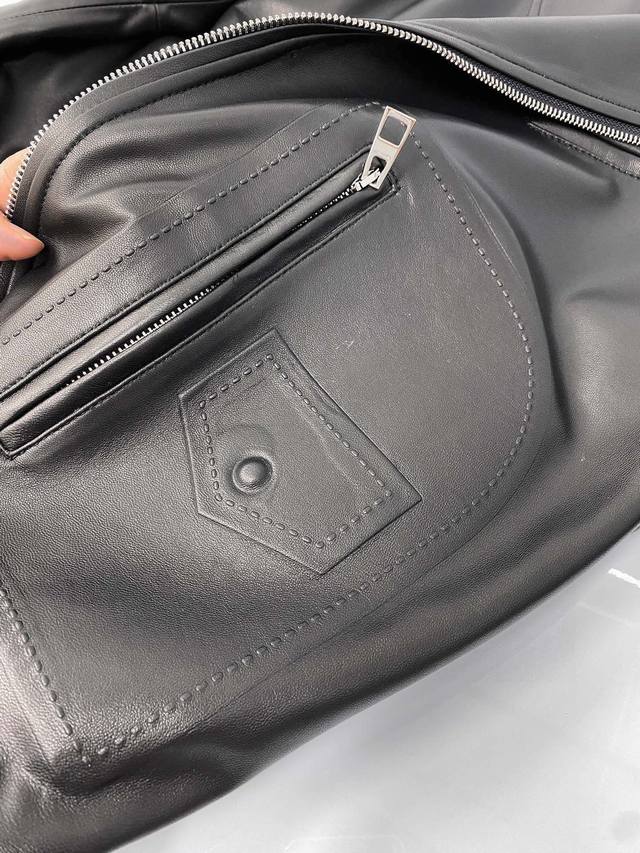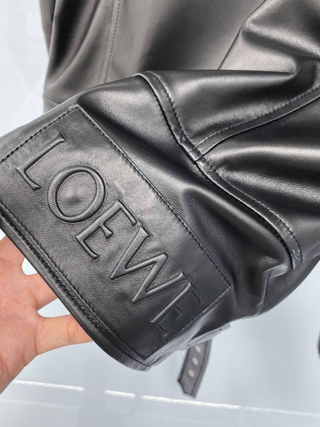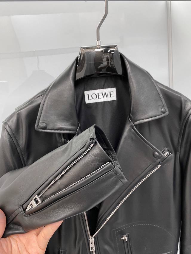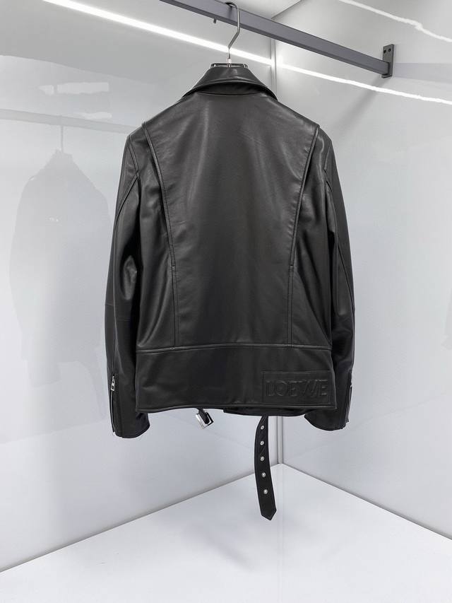 Loewe men's sheepskin motorcycle leather jacket, the latest early spring 2025 leather jacket, featuring a heavily embossed brand logo! This authentic jacket is priced at over 40,000 yuan in the store, and features custom-made hardware for a casual business style. The quality is undeniable, with a simple yet elegant silhouette, top-notch craftsmanship, and tailoring. This sophisticated, stylish, and elegant style is a must-have for any wardrobe. Made from high-quality sheepskin, the leather is delicate and lustrous, and both the style and quality perfectly meet the needs of a modern urban lifestyle. A must-have. Sizes: 48-56