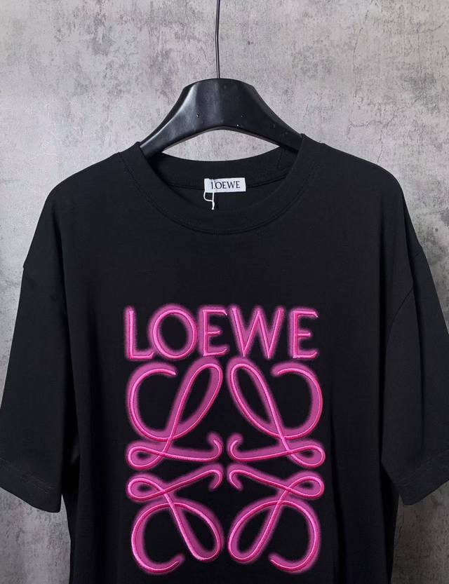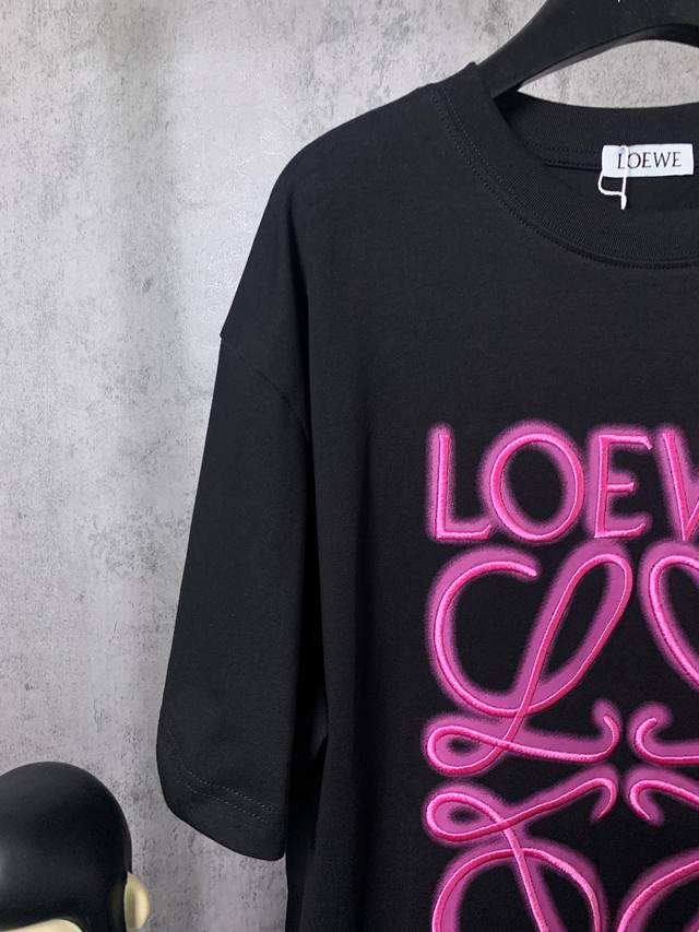Loewe*Loewe neon fluorescent pink Logo short-sleeved T-shirt
