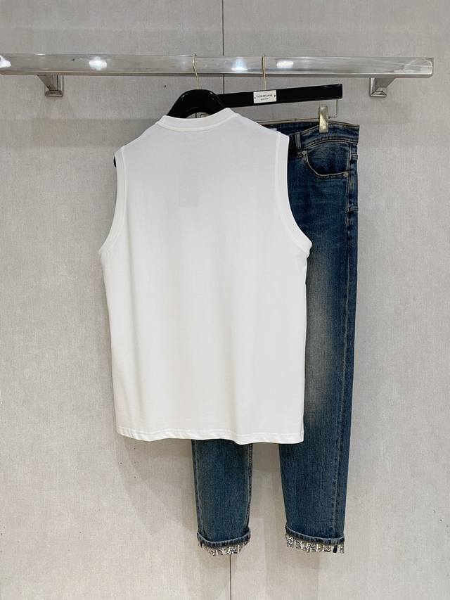 Loewe's new 25Ss vest features reinforced threading on the neckline and cuffs to prevent deformation. The collar is wrapped with thread and the collar hem features a logo and side microphones! The fabric has been washed for a comfortable, breathable, and pilling-resistant feel! Unisex sizes: M-3Xl