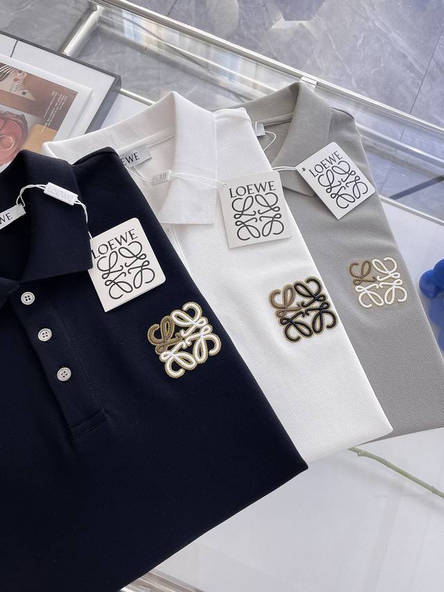 Loewe's new summer 2025Ss logo men's lapel polo shirt! A classic business style, the pinnacle of high-end menswear! Simple, stylish, and elegant, it looks stunning worn alone or as an inner layer. With meticulous attention to detail, it's understated yet luxurious, with a refined aesthetic! Made from custom-woven 100% mesh pique cotton, the fabric features an evenly spaced mesh texture for excellent breathability and heat dissipation, offering superior comfort compared to ordinary single-sided jersey fabrics! The classic brand logo on the chest is crafted using top-tier craftsmanship, resulting in a clear, full, and three-dimensional look. This exceptionally textured piece is a classic whether worn as an inner layer or on its own! The exquisite tailoring and meticulous attention to detail create a look that defies the average, lower-end market. This essential and versatile polo shirt is a must-have for men!