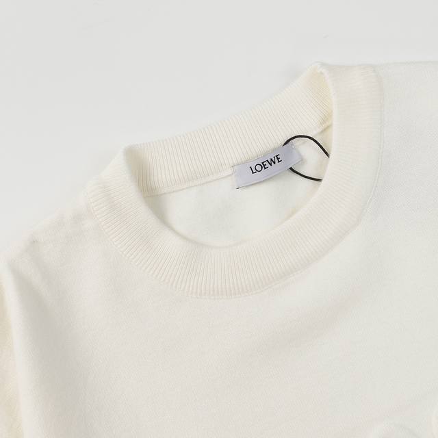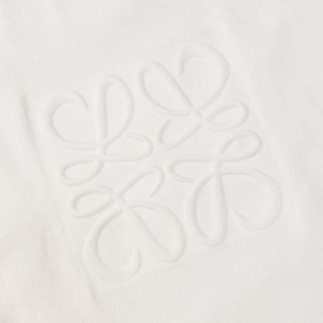 Loewe's new unisex sweater with anagram embossed front. Founded in 1846 as a cooperative of artisans in Madrid, the historic leather goods brand Loewo was later integrated into a pioneering luxury goods group by German entrepreneur Enrique Loewe Rossberg. Since 2013, Anderson's forward-thinking vision has infused Loewe's essential menswear pieces with a subtle, irreverent energy.