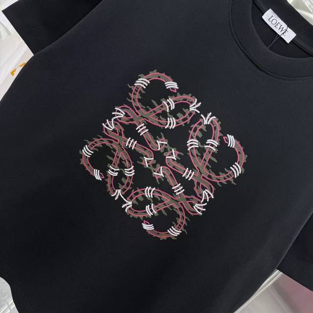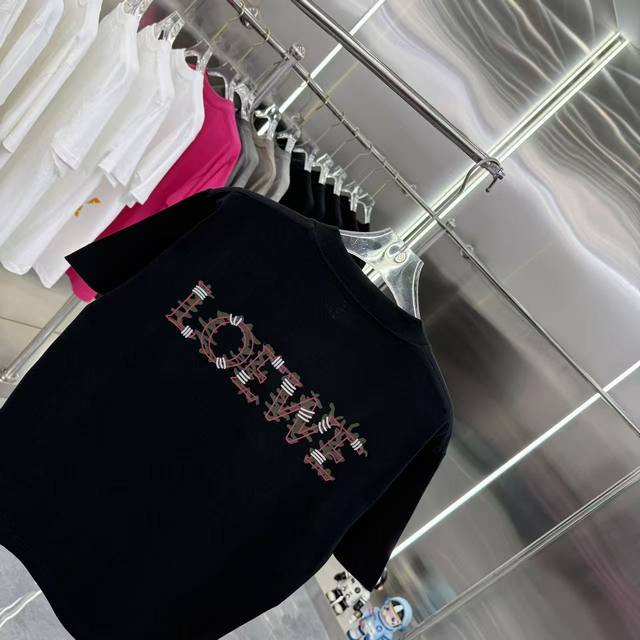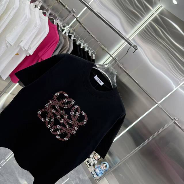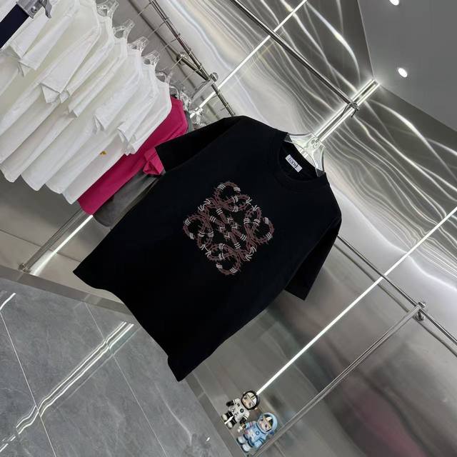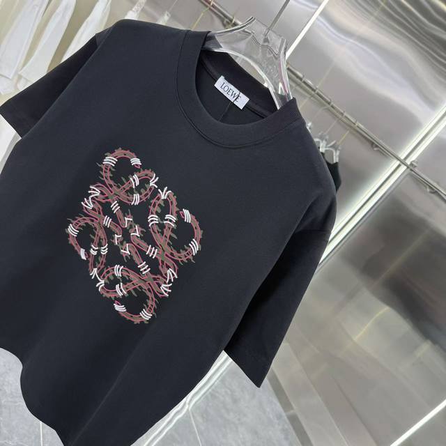 Low Loewe 2025 Spring and Autumn new 320g round neck short sleeves engraved mold