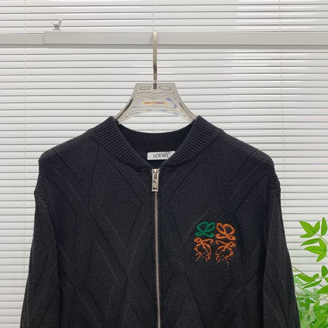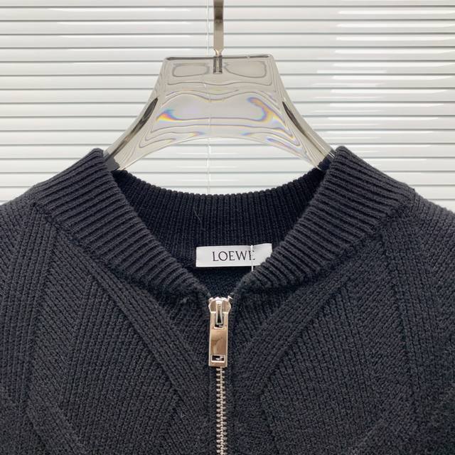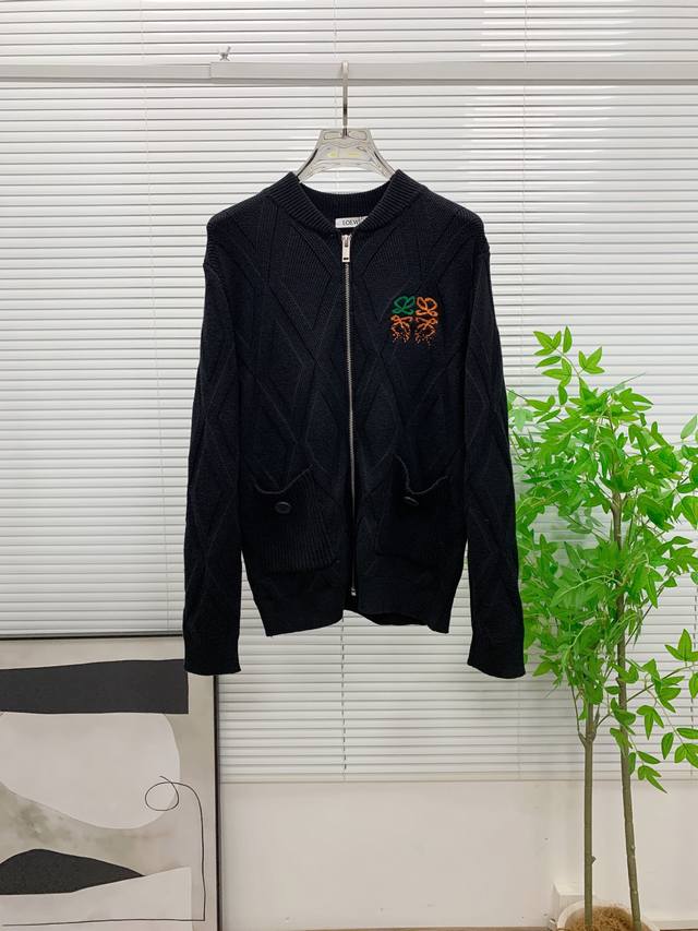 S Loewe Black Diamond Pattern Wool Coat, classic baseball collar + zipper design, casual yet stylish. Colors: Black, White. Sizes: M-3XL. Recommended size: L for someone 175cm tall and weighing 140kg.