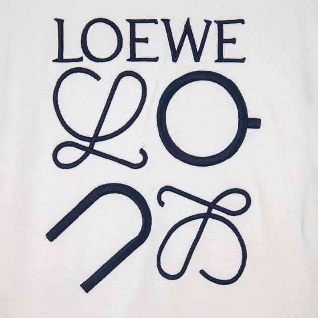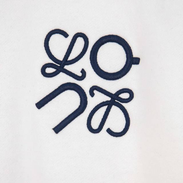 Loewe crewneck sweatshirt with large front and back logo embroidery.