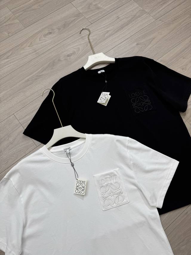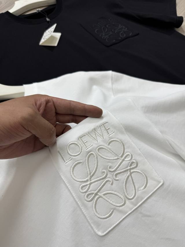 Loewe 2025Ss spring and summer chest pocket embroidered short-sleeved T, unisex style, loose version, size Xs-L.