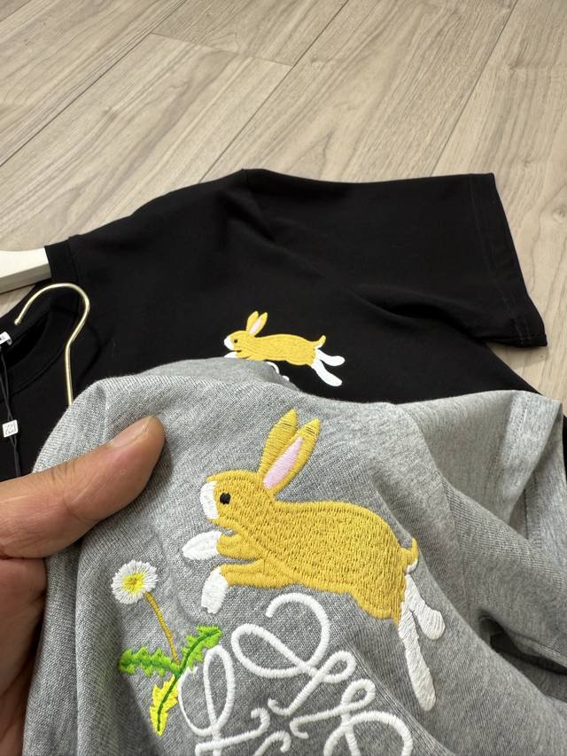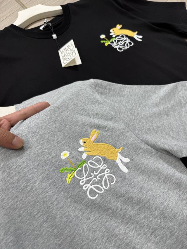 Loewe Loewe x Suna Fujitass25 round-neck bunny pattern embroidered loose short-sleeved T-shirt, the same style for men and women, both can be controlled. Sizes Xs~L, loose version, no need to deliberately add a size, attached at the end of the article for reference!