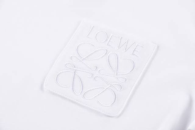 0213, high-end custom-made, exclusive top-quality version of Loewe's* brand pocket logo embroidered crew neck short-sleeved T-shirt. Made with exclusive custom-made 290g original 1:1 double-ply double-yarn pure cotton fabric, custom-woven and dyed in the same batch with no color difference in the ribbing. Custom-made 1:1 accessories, complete with three labels. Oversized loose fit, exquisite and perfect workmanship, soft and comfortable fabric that does not deform. Unisex style, different from other versions on the market. Specializing in high-end, top-quality goods. Welcome to compare quality. Sizes: Xs, S, M, L. Colors: Black, White.