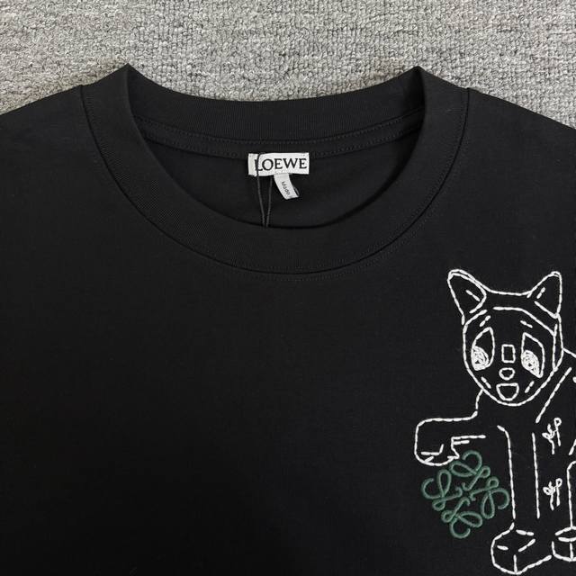 A663 Same-day arrival, in stock and ready to ship. Loewe high-quality 320g crew neck short-sleeved T-shirt. Features classic kitten yarn pom-pom and embroidered logo. 2026 Spring/Summer official version, high quality, fashionable , versatile, trendy. Original quality fabric. Complete with tags, neck label, and wash label. Colors: Black, White, Pink. Sizes: S, M, L, XL.