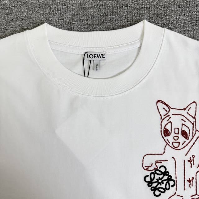 A664 Same-day arrival, in stock and ready to ship. Loewe high-quality 320g crew neck short-sleeved T-shirt. Features classic kitten pom-pom design with embroidered logo. 2026 Spring/Summer official release, high-quality, fashionable, versatile, and trendy. Original quality fabric. Complete with tags, neck label, and wash label. Colors: Black, White, Pink. Sizes: S, M, L, XL.