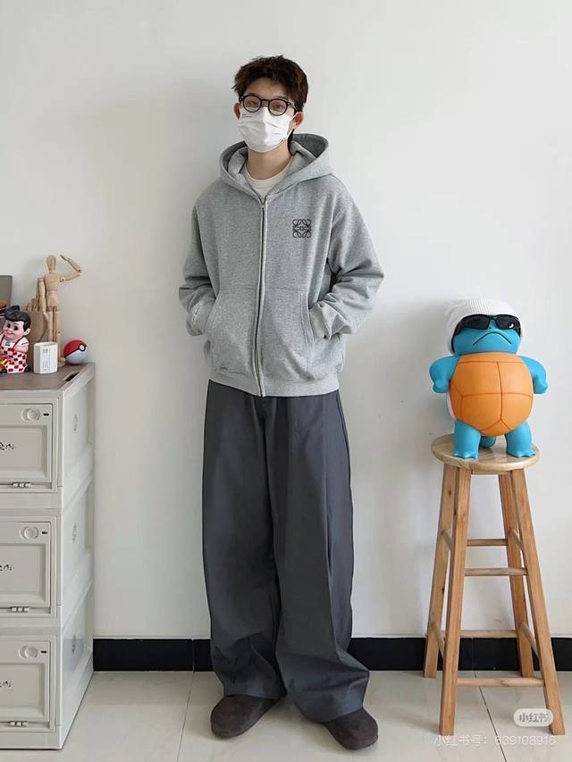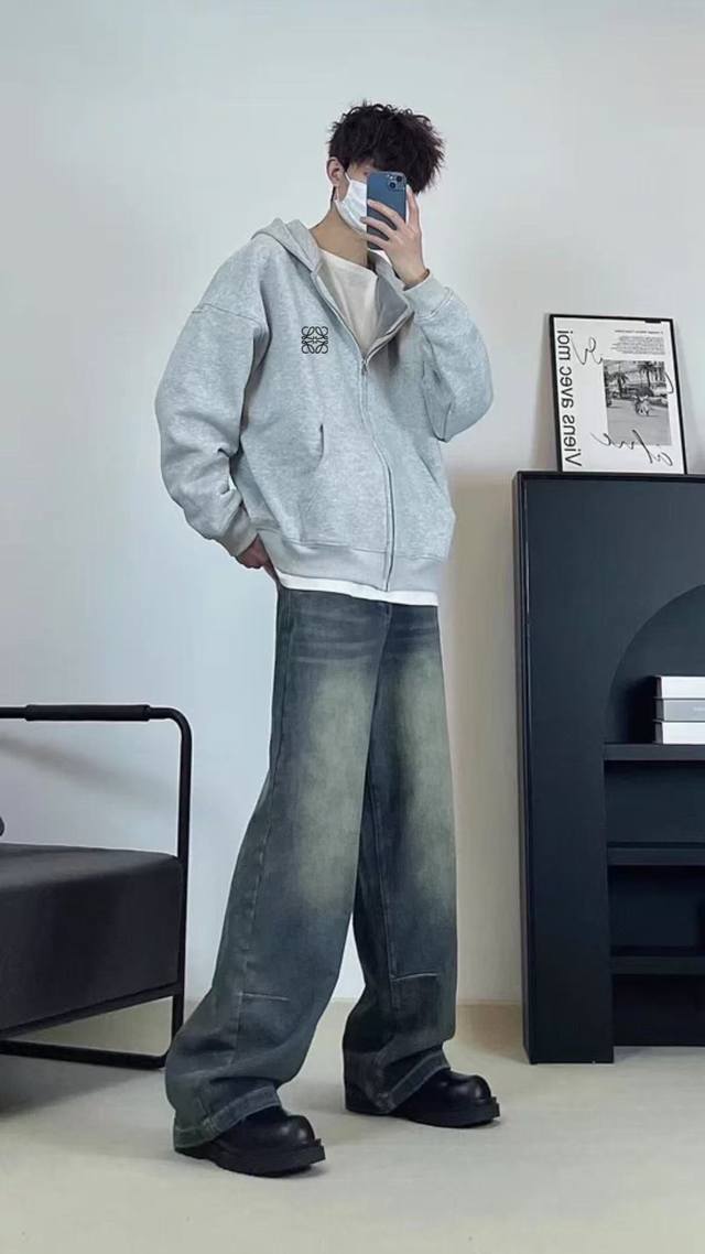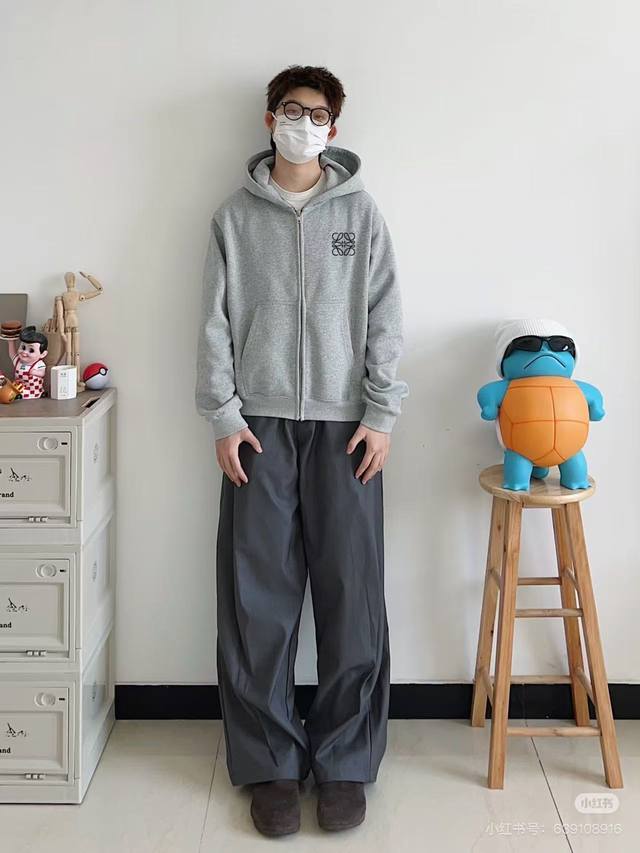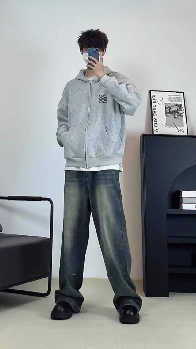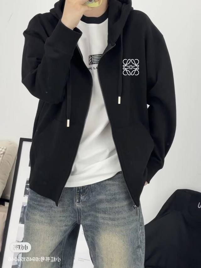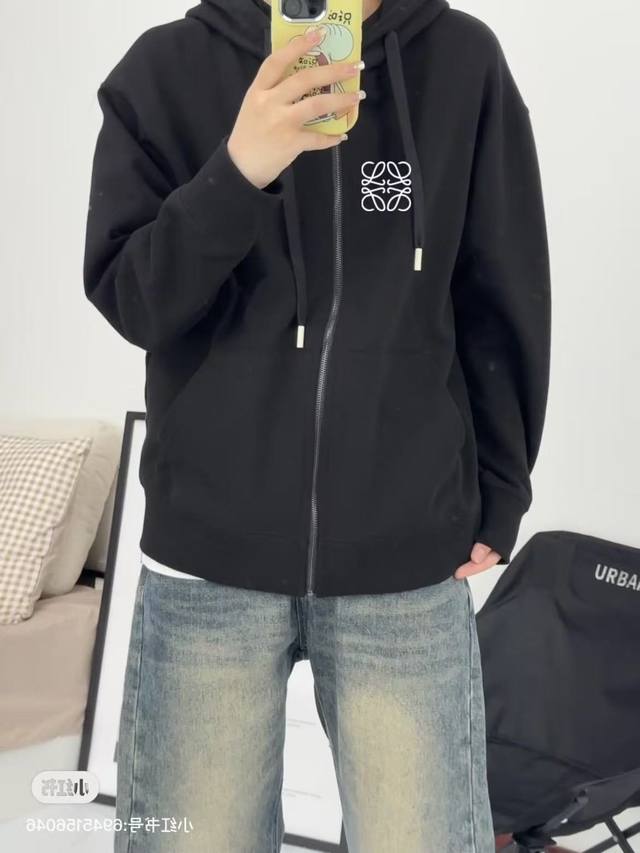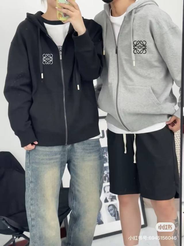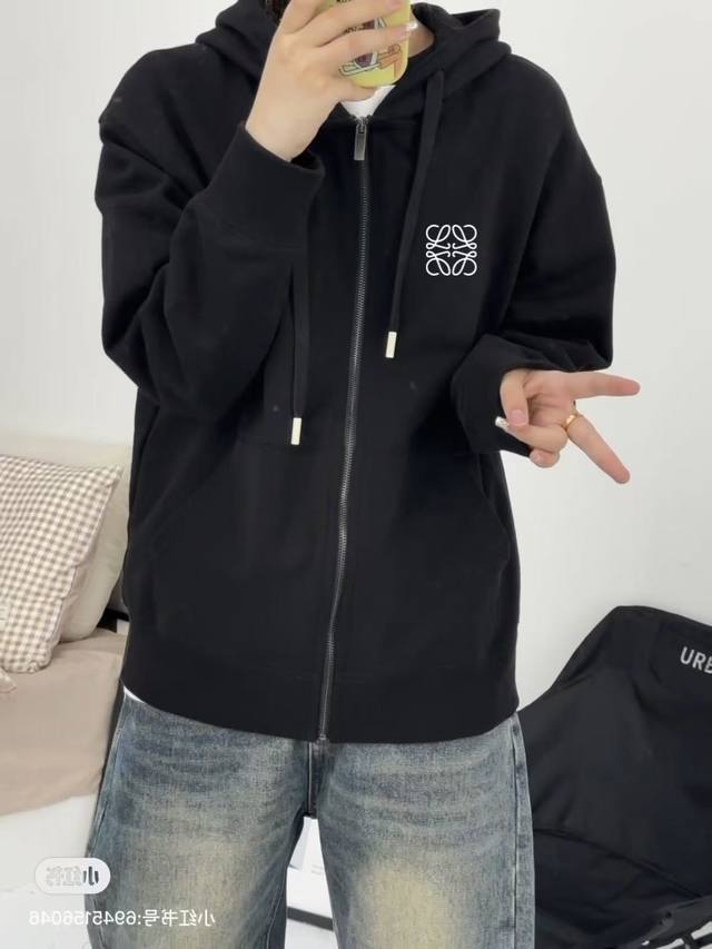 Heavyweight Embroidery! Loewe Versatile Drop-Shoulder Wide-Shoulder Hoodie Cardigan