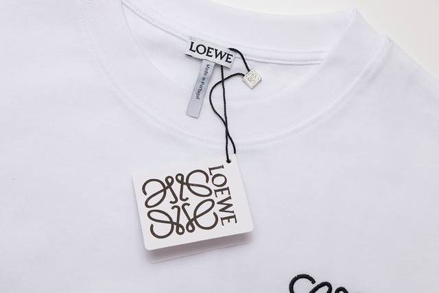 High-end quality, exclusive customization, Loewe classic embroidered letter logo round neck T-shirt, made of custom-dyed high-weight original fabric, washed up to 280G pure cotton double yarn fabric, thread increased to 2.7 to maintain deformation, loose oversized version, unisex style, different from the market currency version