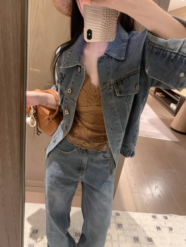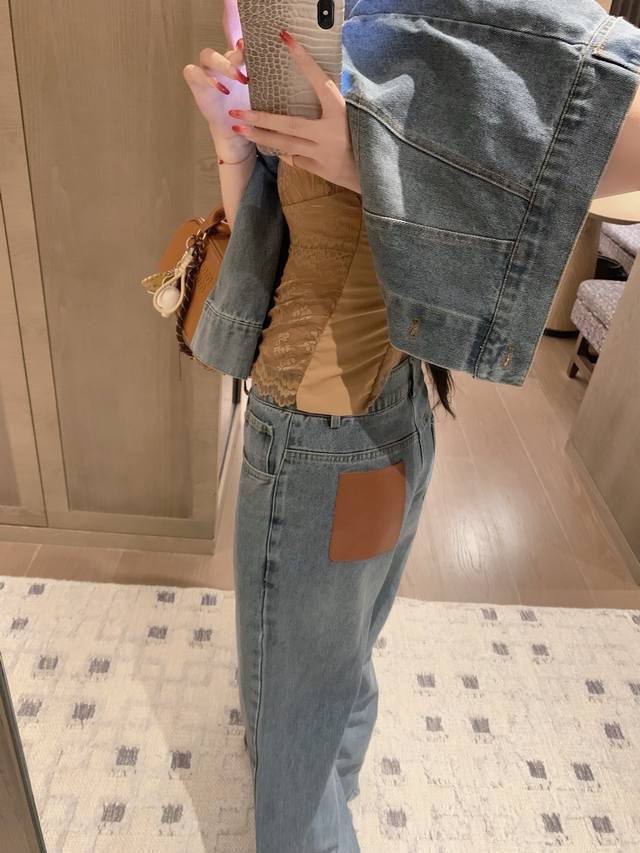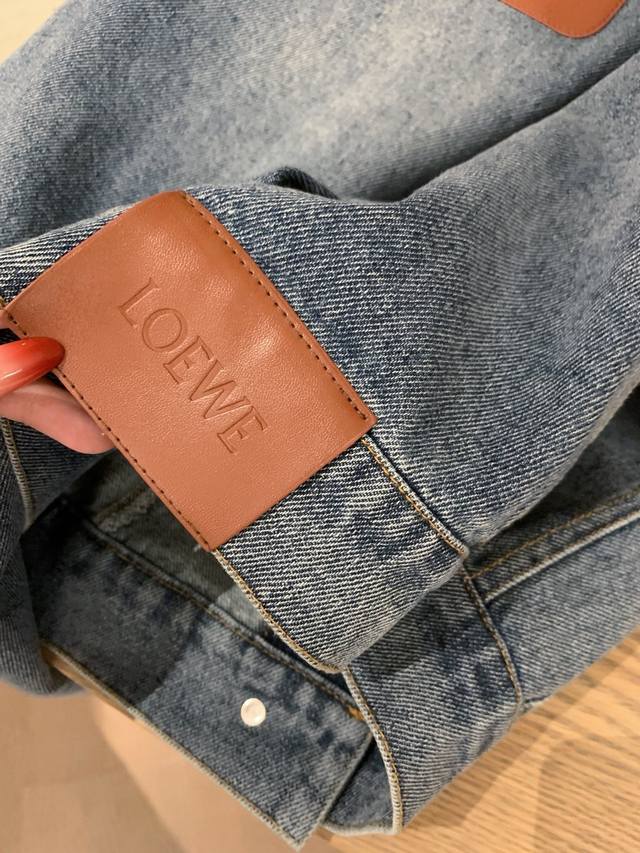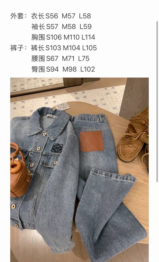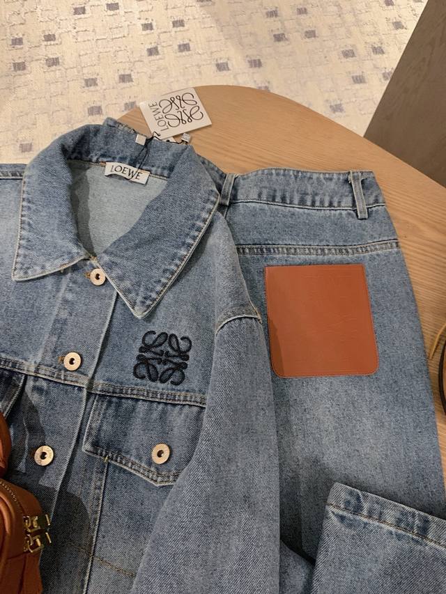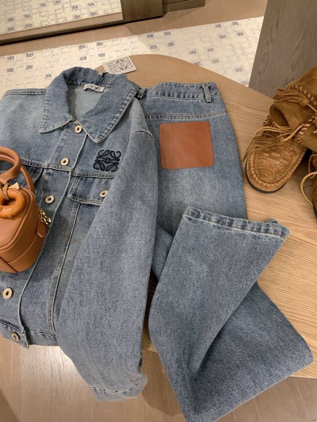 Loewe Loewe *custom leather brand logo letter retro washed denim jacket slim straight trousers Sml end of the picture
