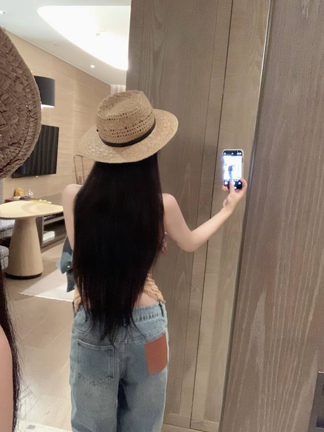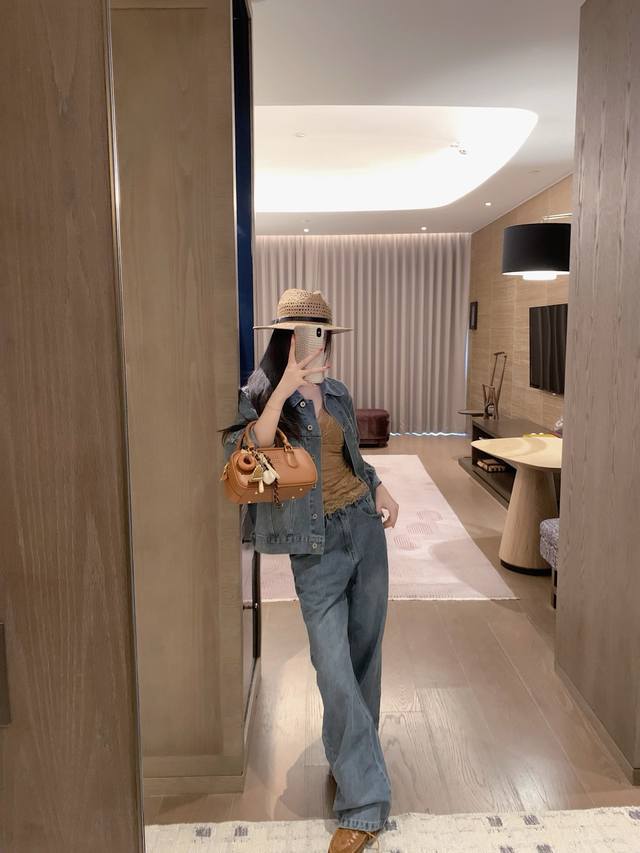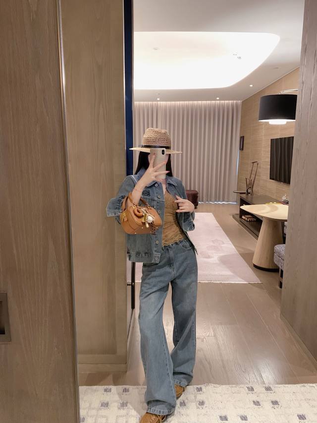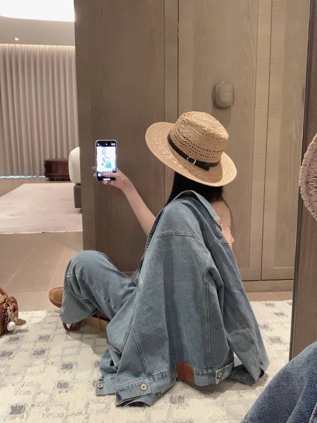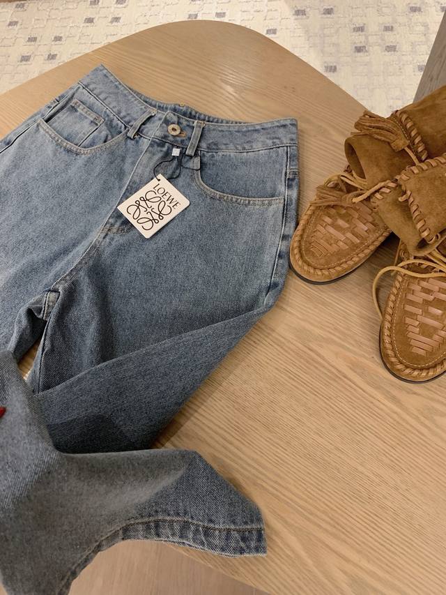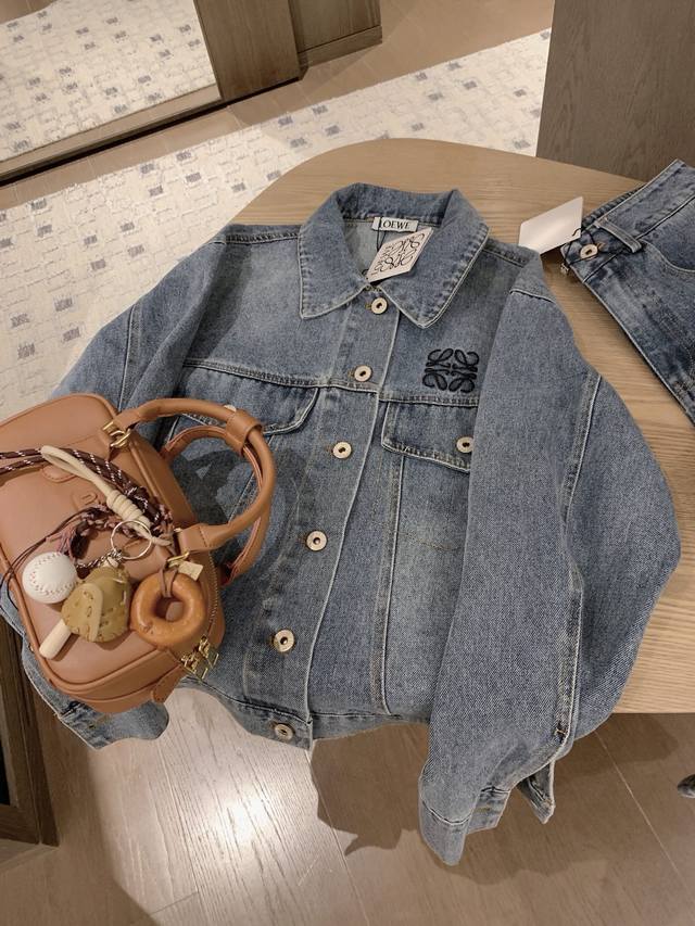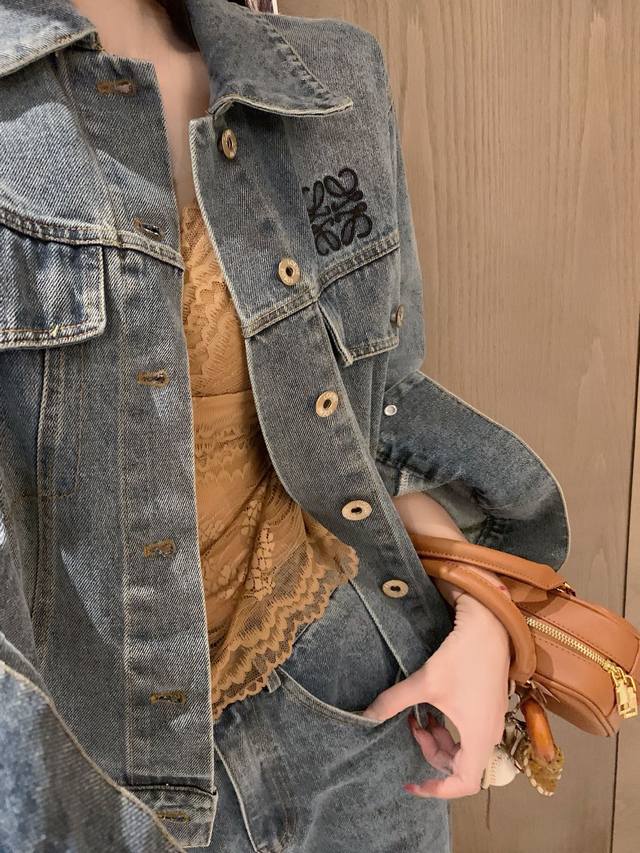 Loewe Loewe *custom leather brand logo letter retro washed denim jacket slim straight trousers Sml end of the picture