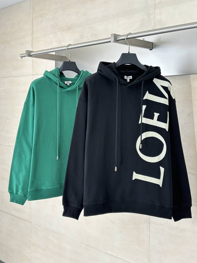 Loew* Loewe Printed Hooded Sweatshirt DDD Custom-dyed high-count cotton light dark green spun hooded sweatshirt. The base fabric is delicate and silky, comfortable against the skin. The main tone is a deep and restrained light dark green, like a clear spring in a quiet forest. The striking yellow Loewe print on the side is an embellishment. The bold design proclaims the brand's prestige and instantly becomes the visual focus, showing a luxurious style. DDD Size: SML XL DDD