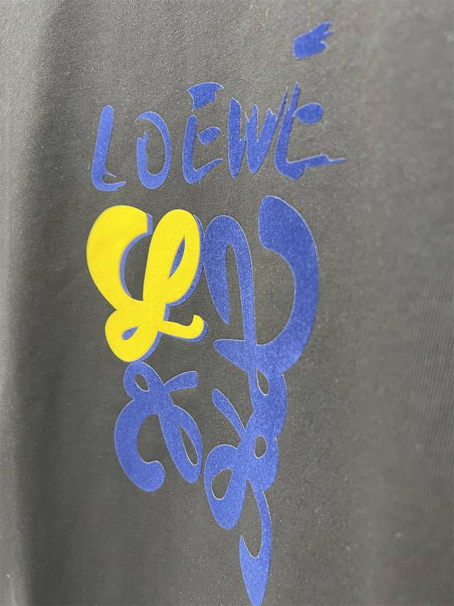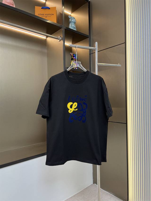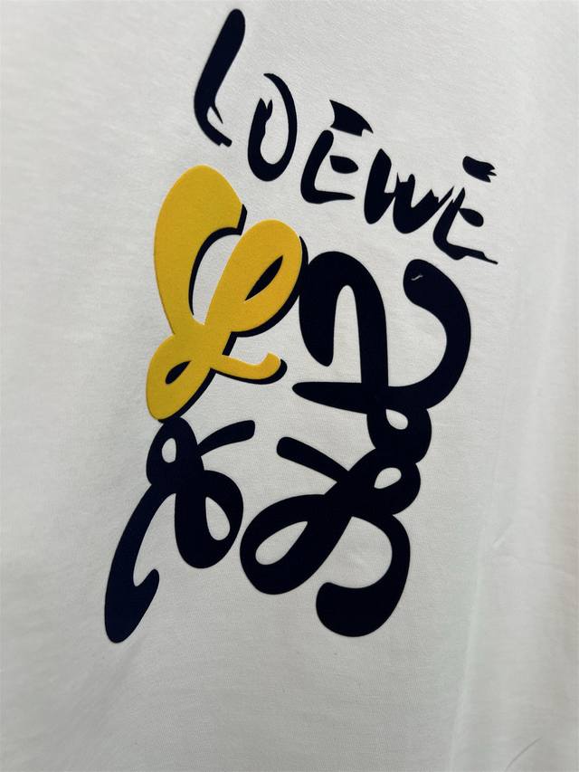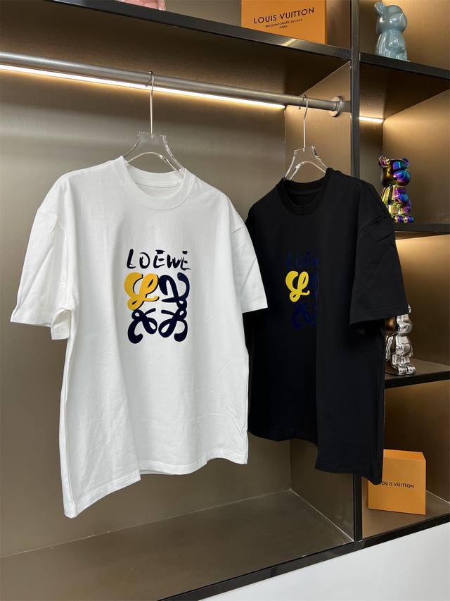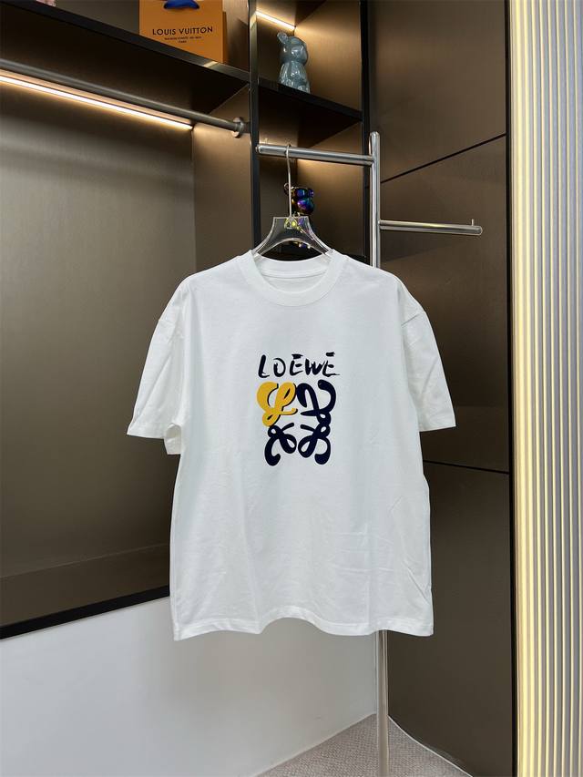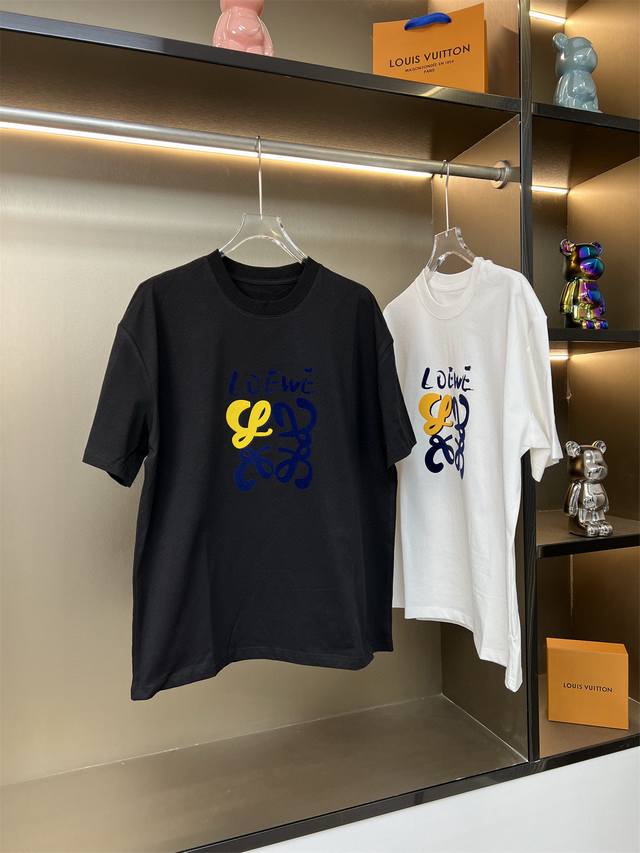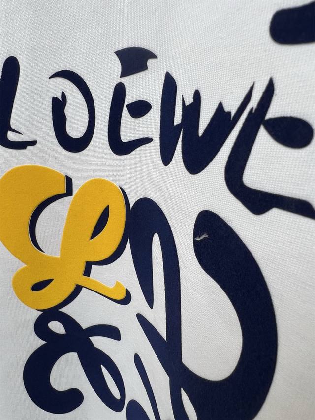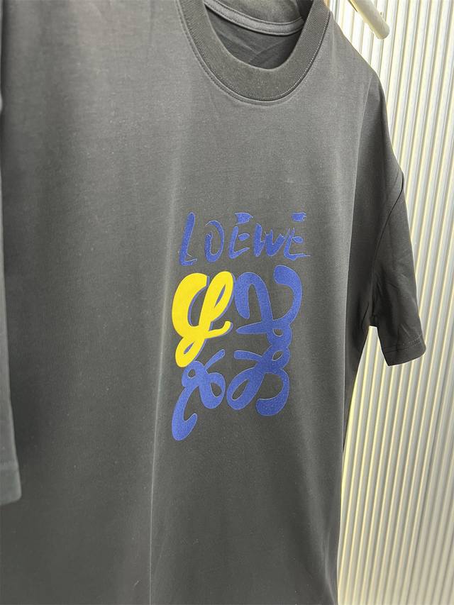 Loewe 2025Ss new flocked color matching printed couple casual short-sleeved T-sh