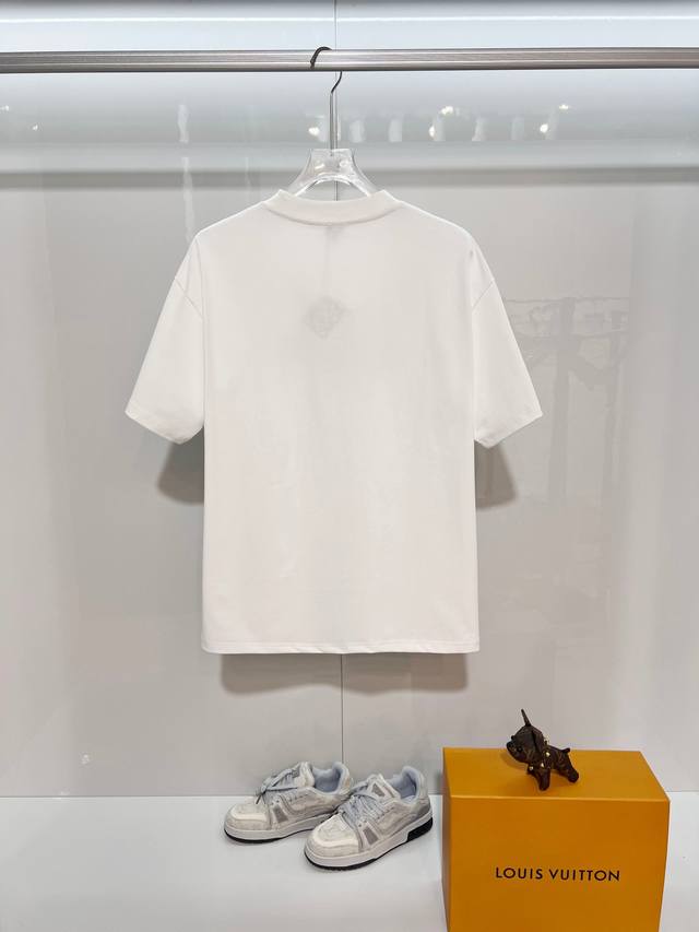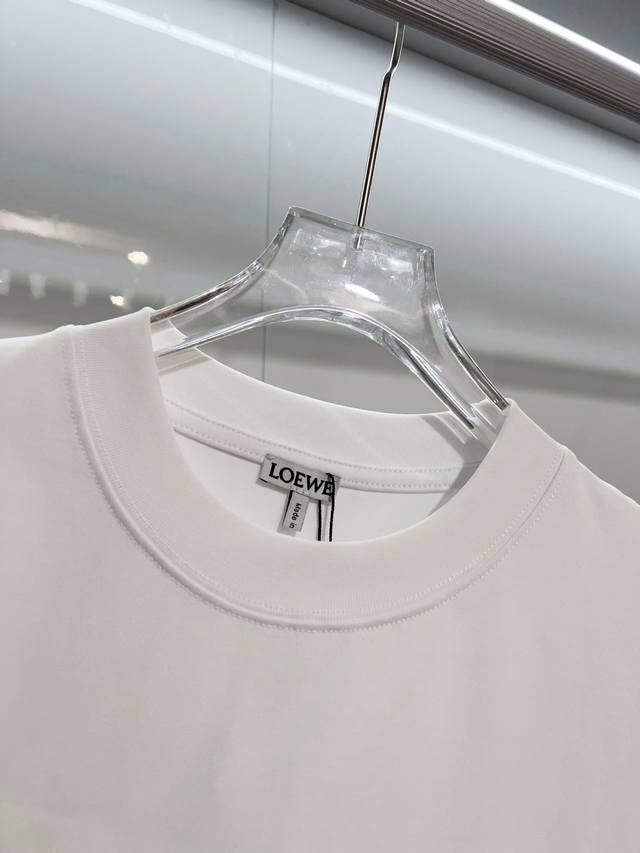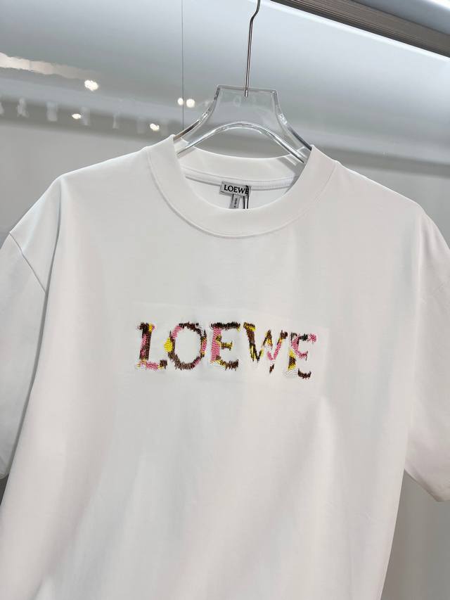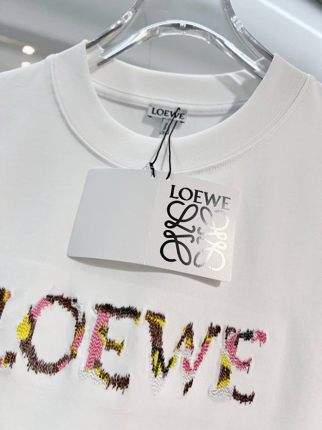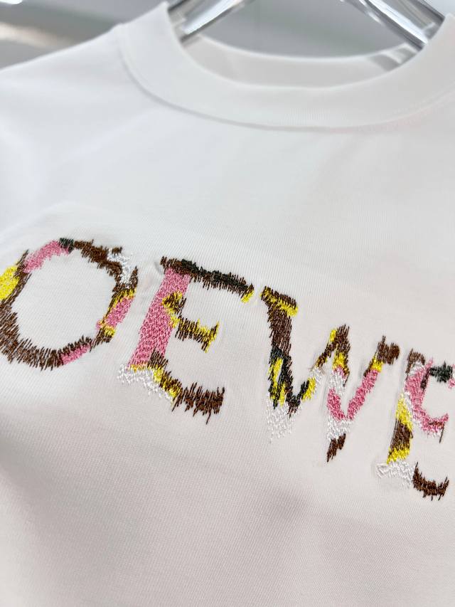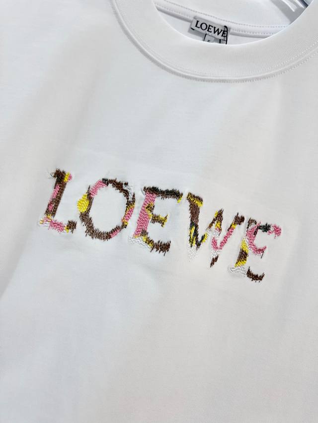 Loewe 2026 New Colorful Embroidered Logo Unisex Short-Sleeve T-Shirt, Custom 320g 100% Double Yarn Pure Cotton Fabric, Custom Dyed 32-Count Double-Strand Ribbed Fabric, Complete with Neck Label, Hang Tag, and Main Label, Color: White, Sizes: S, M, L, XL