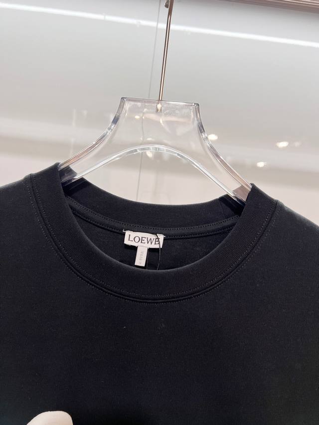Loewe 2026 New Style Official Website Synchronized Flocked Foamed Letter Logo Unisex Short-Sleeve T-Shirt, Custom 320g 100% Double Yarn Pure Cotton Fabric, Custom Dyed 32-Count Double-Strand Ribbed Fabric, Complete with Neck Label, Hang Tag, and Main Label, Color: Black, Sizes: S, M, L, XL