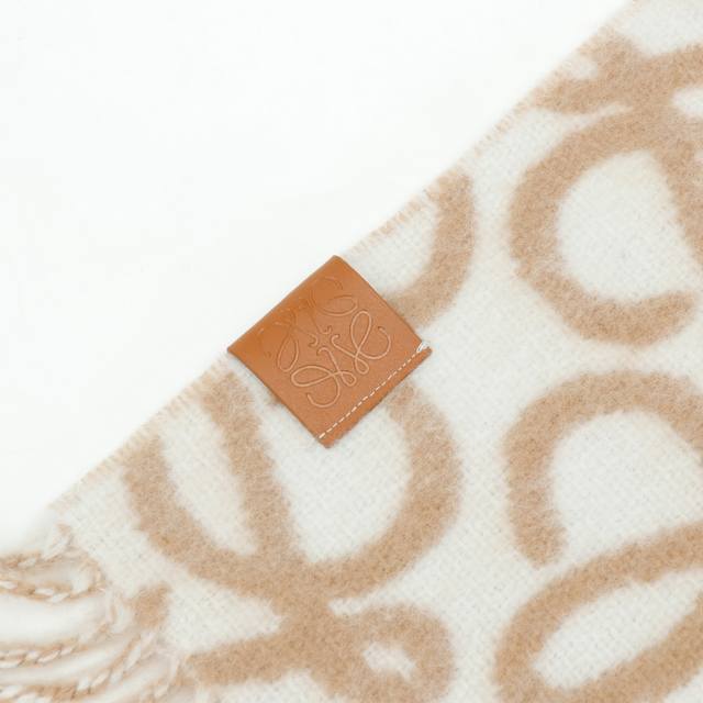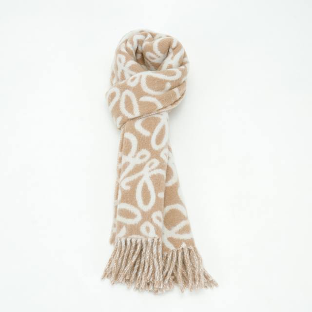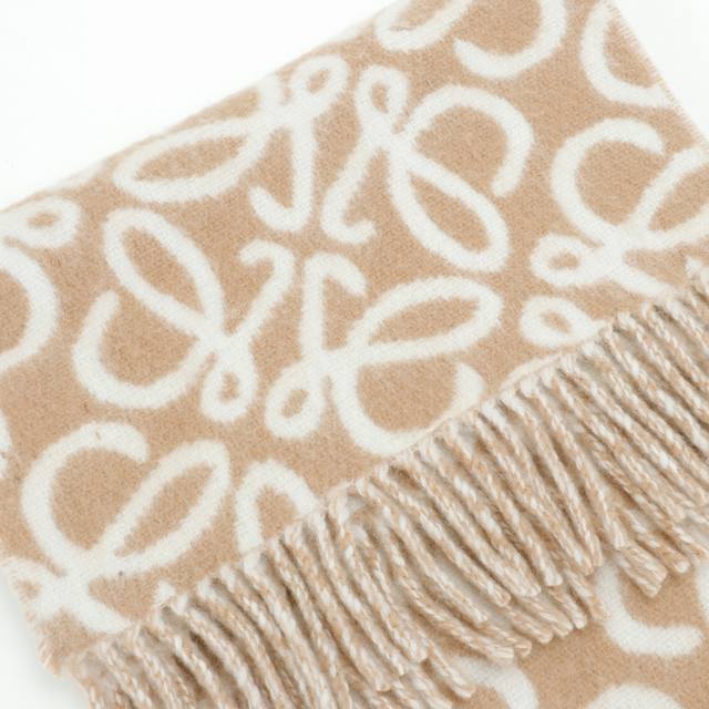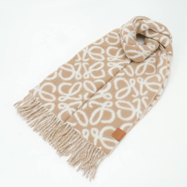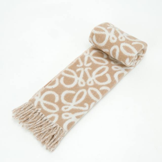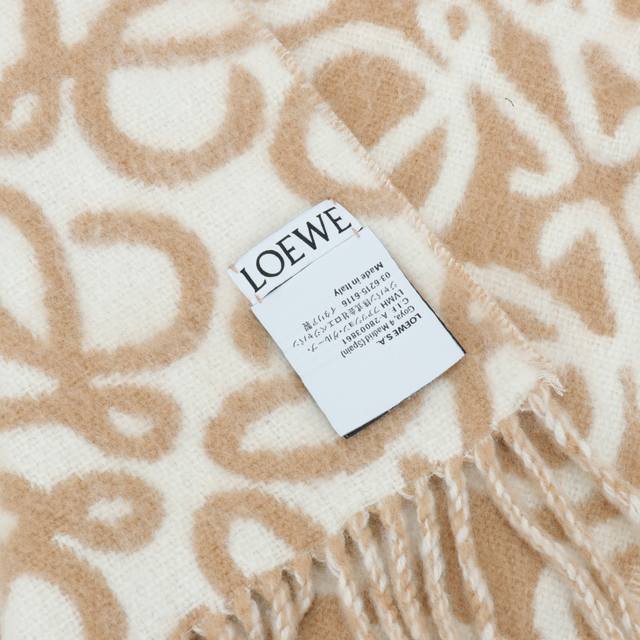 Loewe 23Fw Double-sided jacquard wool and mohair tassel long scarf. Made of wool and mohair. Printed on an imported knitting machine with an all-over pattern. Full packaging included. Loewe scarf.