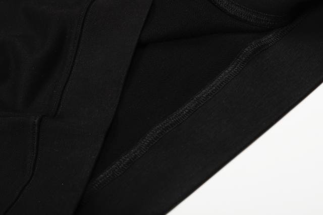 - 380G terry fabric 1*1 matching threaded back neckline Correct double-layer patch Correct customization The quality of auxiliary materials is in the details