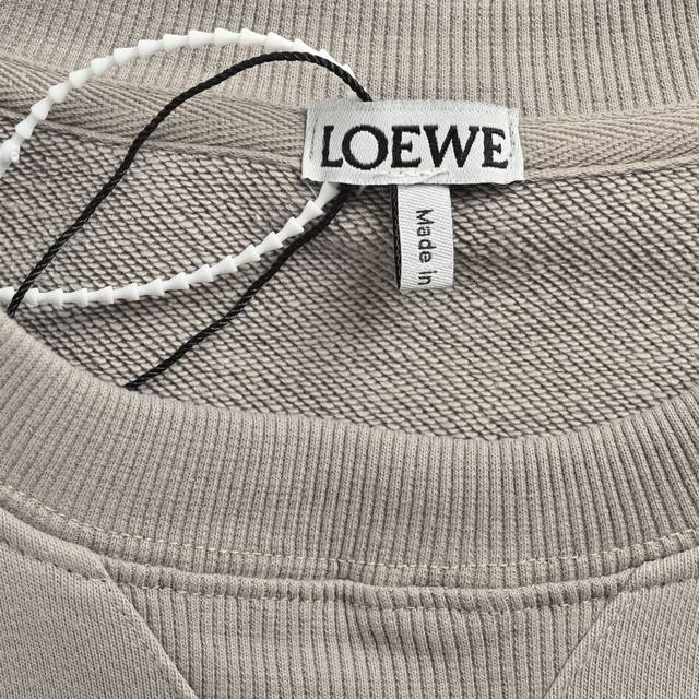 Loewe 25Fw Embroidered Logo Crew Neck Sweatshirt. Made of 420g pure cotton double-yarn fish scale terry fabric. Features a dust-free singeing process on the face and lint-absorbing, eco-friendly reactive dyeing on the bottom. Imported Tajima machine embroidery of the classic logo icon. Original label, wash tag, and moisture-proof paper packaging. Colors: Gray, Green. Sizes: S, M, L, XL.