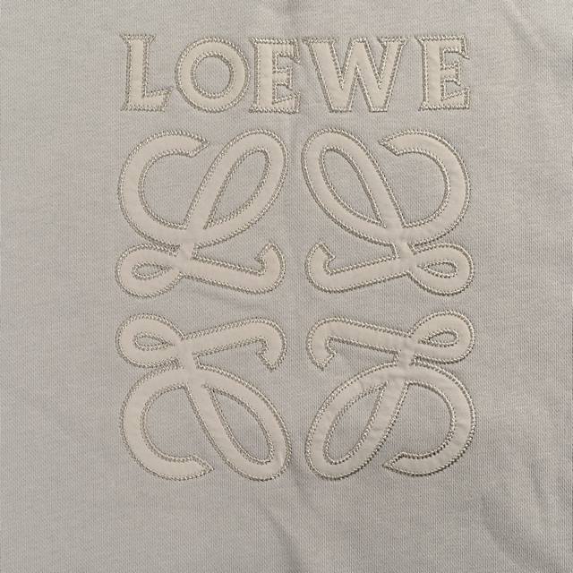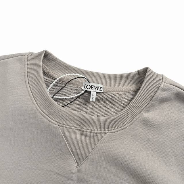 Loewe 25Fw Embroidered Logo Crew Neck Sweatshirt. Made of 420g pure cotton double-yarn fish scale terry fabric . Features a dust-free singeing process on the face and lint-absorbing, eco-friendly reactive dyeing on the bottom. Imported Tajima machine embroidery of the classic logo icon. Original label, wash tag, and moisture-proof paper packaging. Colors: Gray, Green. Sizes: S, M, L, XL.