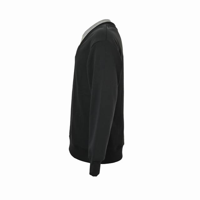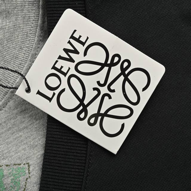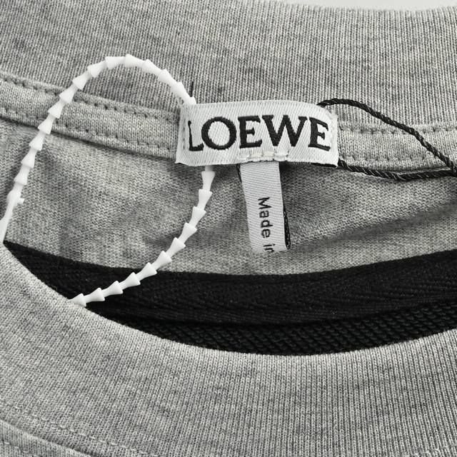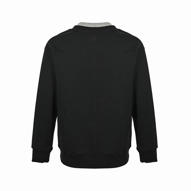 Loewe 25Fw Faux Two-Piece Crew Neck Sweatshirt. Made of 420g pure cotton double-yarn fish scale terry fabric. Features include: dust-free singeing process on the face, lint-absorbing and environmentally friendly reactive dyeing on the bottom, hand-screened environmentally friendly printing, deep V-neck design, white T-shirt with color blocking, 3D embroidered classic logo on the back, original label, wash tag, and moisture-proof paper packaging. Colors: Black, Gray. Size: S-XL.