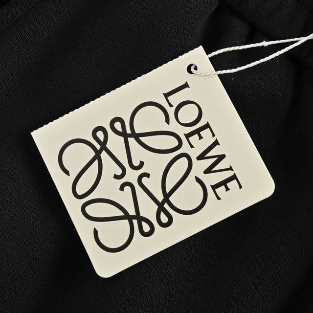 Loewe's new autumn/winter trousers, made from high-quality pure cotton, soft and skin-friendly. Made in Italy with superior craftsmanship, featuring a three-dimensional ribbed cuff that precisely wraps around the ankle, keeping you warm and draft-free. Say goodbye to sloppy style and create a clean silhouette. The chest uses a triple-process technique, with digital printing of the brand's classic logo on the side. Laser-cut Spanish calfskin letters, with an ultra-thin 0.2mm profile, are seamlessly bonded to the sweatshirt fabric through high-temperature bonding. Each piece of leather retains the unique carbonization marks of the laser on the edges. The 21-count honeycomb structure cotton waffle weave perfectly supports the shadows of the laser-engraved letters, creating a three-dimensional, layered effect.