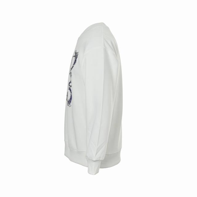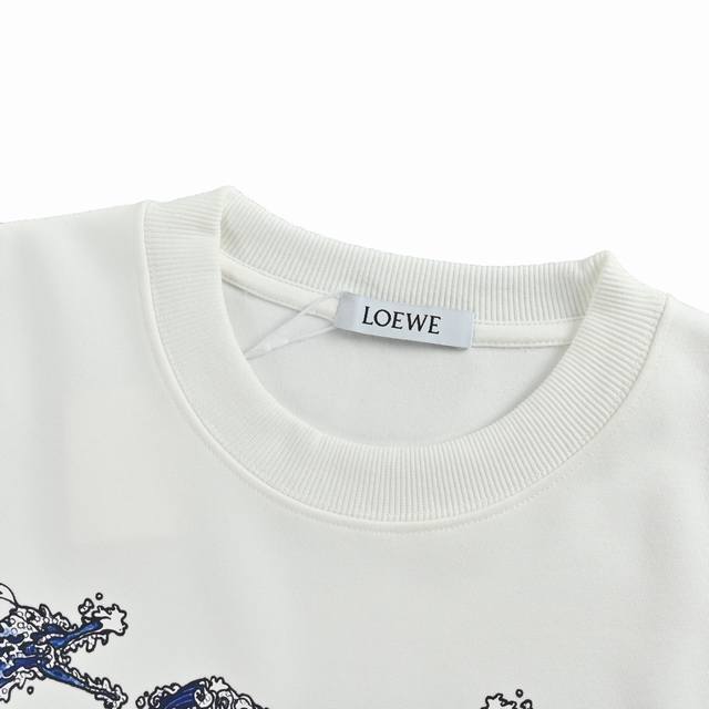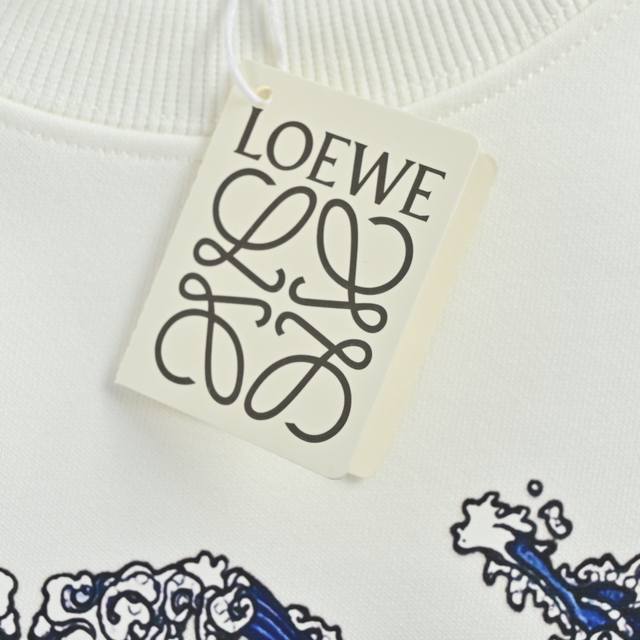 Loewe 25Fw Wave Logo Print Crew Neck Sweatshirt (Ddd). 420g pure cotton fabric, terry cloth sole, custom 32-count 2*2 ribbing. Two-wash finish. Comfortable and skin-friendly fabric with no irritation. Custom-dyed fabric with high weave density, excellent drape, and resistance to deformation. The thick weave and tight spinning process do not affect the sweatshirt's breathability. High color saturation. Loose fit, flattering and slimming, suitable for all body types. Super versatile and stylish sweatshirt. Unisex. Size: Xs-L (DDD)