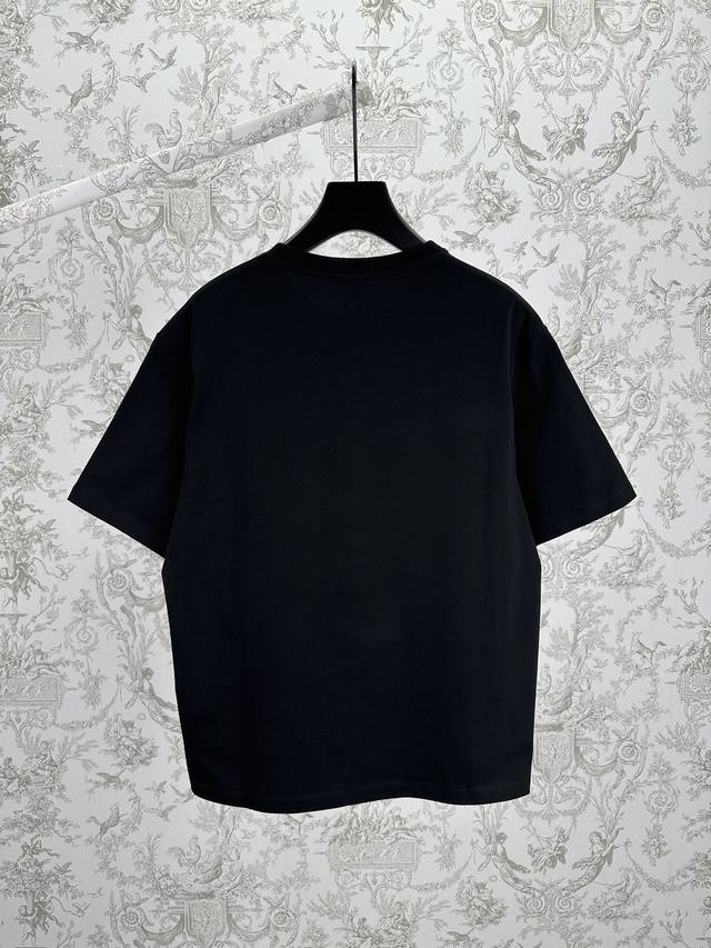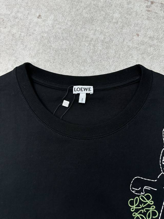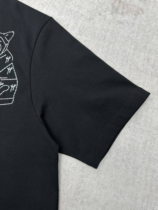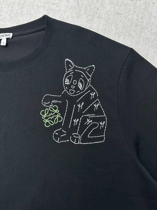 Loewe 25Ss New Cotton Loose Fit T-Shirt. A lightweight black cotton T-shirt with Lucky Cat and Anagram embroidery on the chest. The T-shirt is inspired by Louis Wain's "Futurist Cats" ceramic vase collection. Sizes: S, M, L, DDD