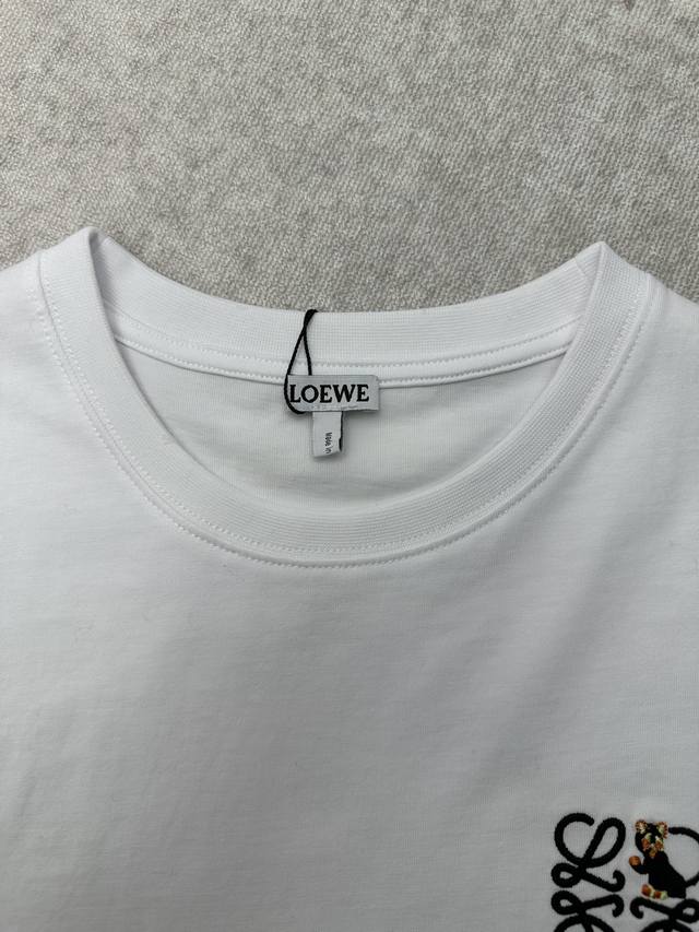 Loewe 25Ss New Cotton Loose Fit T-Shirt. A lightweight white cotton T-shirt with Futurist Cat and Anagram embroidery on the chest. The T-shirt is inspired by Louis Wain's "Futurist Cats" ceramic vase collection. Sizes: S, M, Xl.