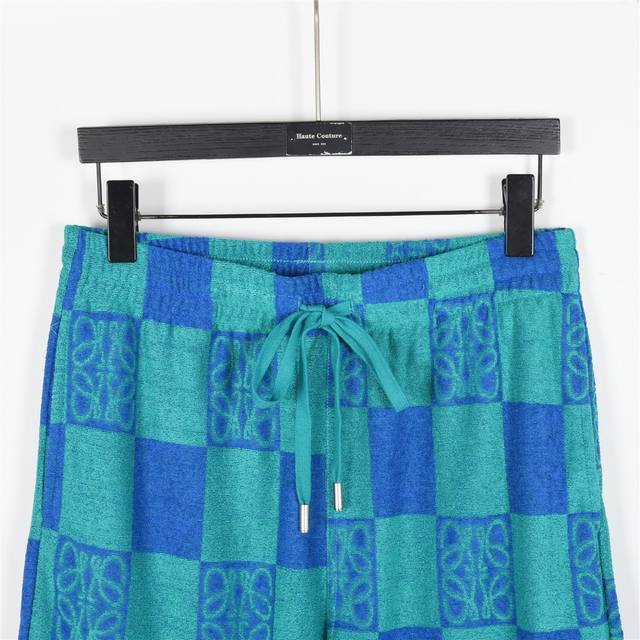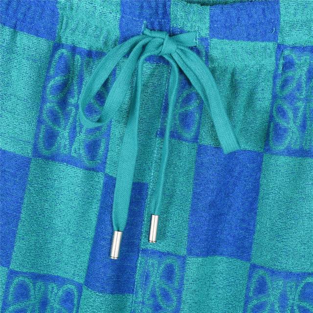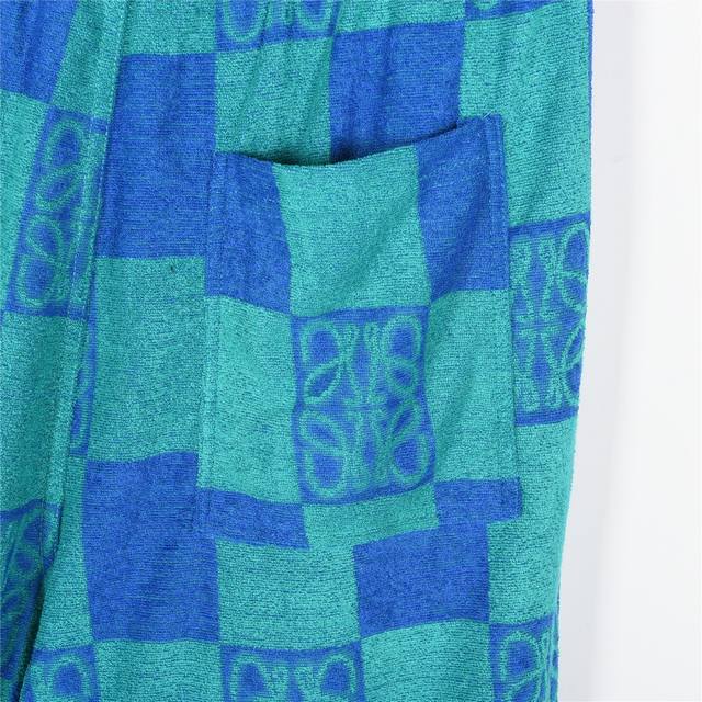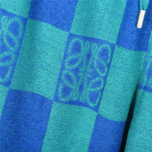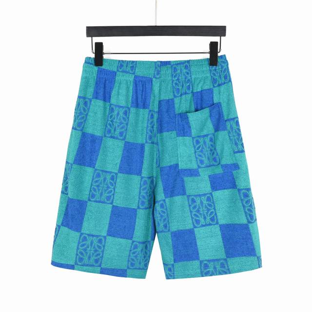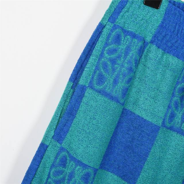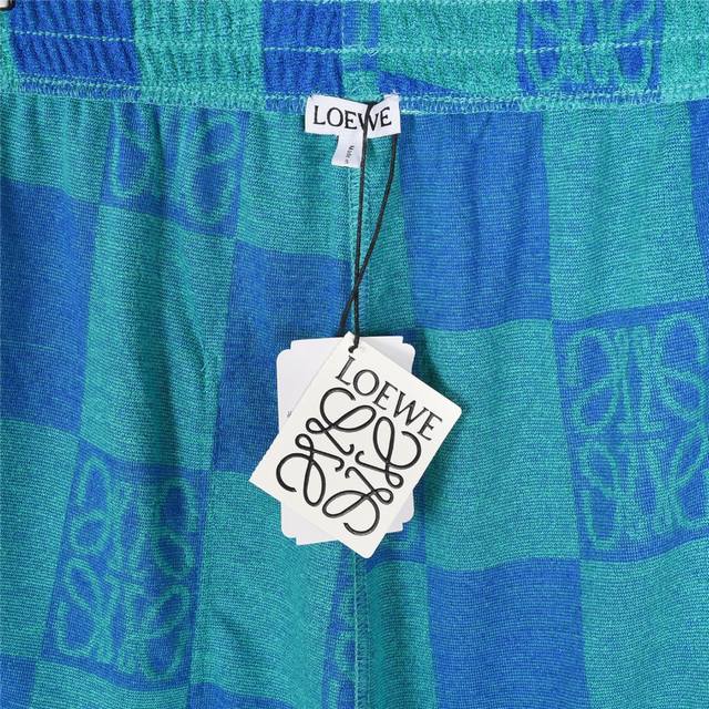 Loewe 25Ss Terry Cloth Checkered Color Block Pattern Shorts Set. This is the same style as the one in boutiques, featuring a custom-dyed terry cloth fabric that enhances its breathability and softness. The rich cotton texture provides extreme comfort. Carefully crafted with a tonal jacquard knit pattern inspired by 1980s retro style, it prominently displays the classic Loewe logo jacquard. A must-have for discerning individuals, complete with original factory accessories and labels! Unisex! Pair it with a matching short-sleeved top for an even better look. Colors: Blue, Black. Sizes: Xs-L.