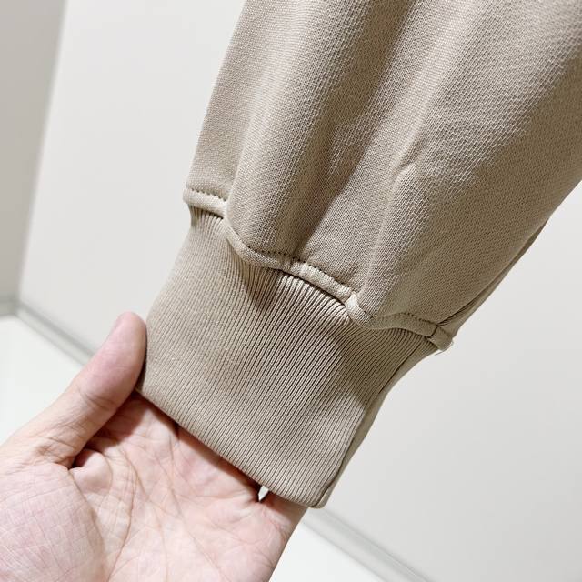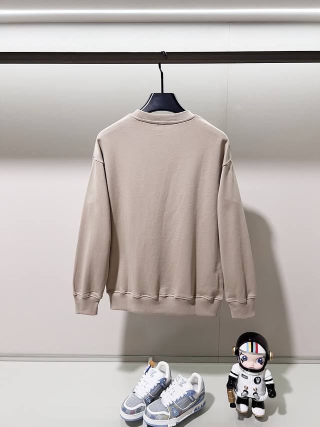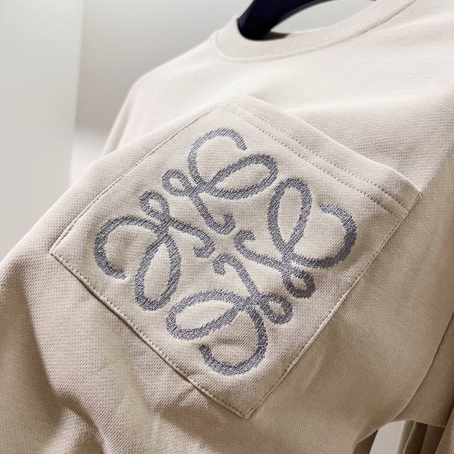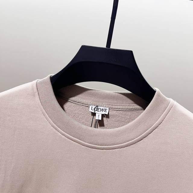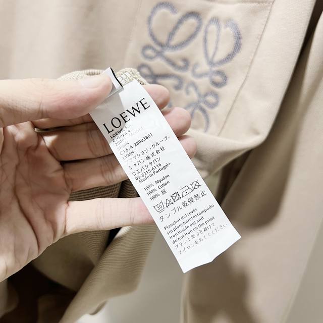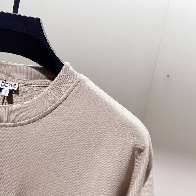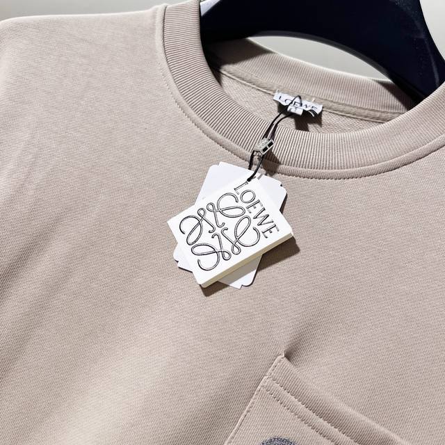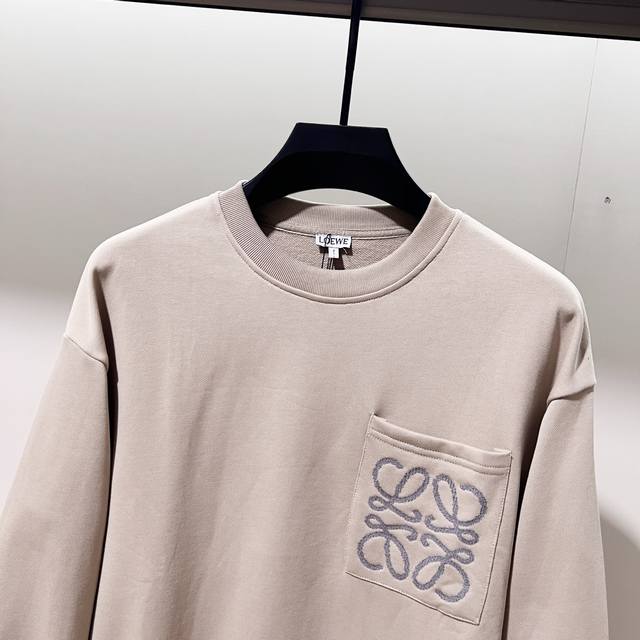 Loewe 420g 100% Cotton Crew Neck Sweatshirt. Features embroidered brand logo, large pocket design, official high-quality version, fashionable and versatile. Made with original fabric, tags, neck label, and washing instructions included. Colors: Black, White, Khaki. Sizes: XS-L.