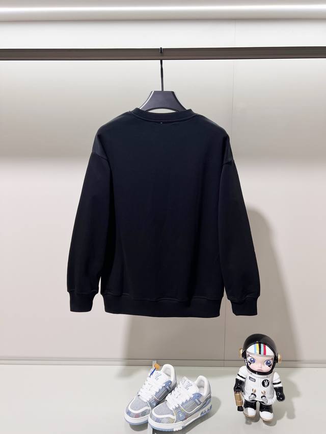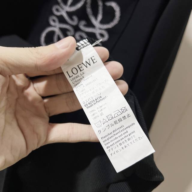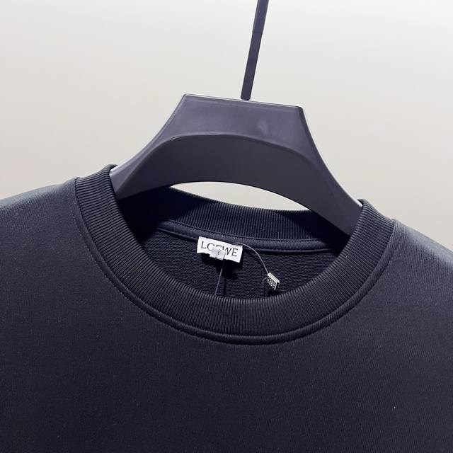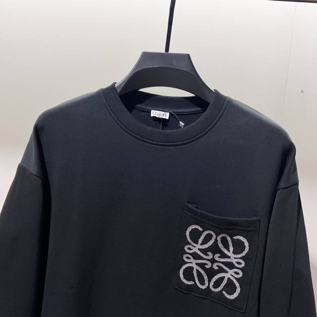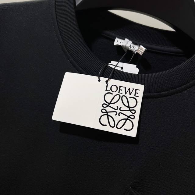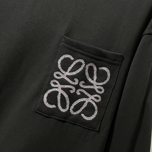 Loewe 420g 100% Cotton Crew Neck Sweatshirt. Features embroidered brand logo, large pocket design, official high-quality version, fashionable and versatile. Made with original fabric, tags, neck label, and washing instructions included. Colors: Black, White, Khaki. Sizes: XS-L.