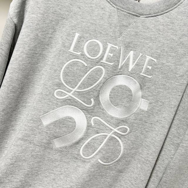 Loewe 420g 100% Cotton Crew Neck Sweatshirt. Simplified collaboration design with embroidered logo. High-quality, official version. Stylish, versatile, and trendy. Original quality fabric. Includes hangtag, neck label, and wash label. Colors: Black, Gray, Pink. Sizes: XS-L.