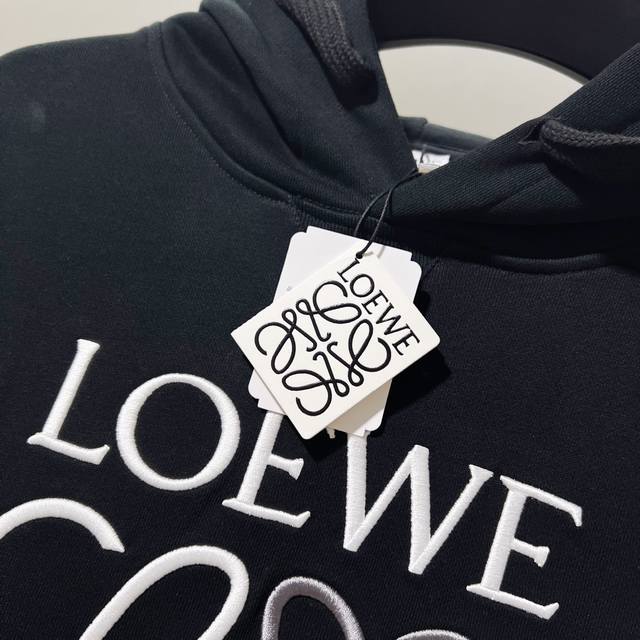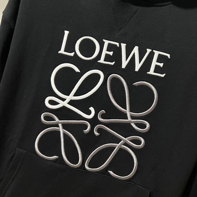 Loewe 420g 100% Cotton Hooded Sweatshirt, 3D Color Block Embroidered Large Letter Logo, Official High-Quality Version, Stylish, Versatile, Trendy, Original Quality Fabric, Complete with Hangtag, Neck Label, Washing Label, and Three Labels. Colors: Black, Apricot, Orange, Light Green. Sizes: XS-L