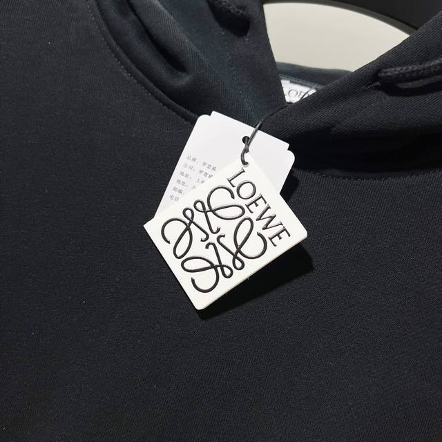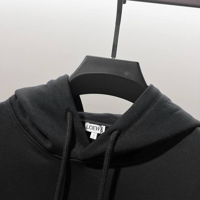 Loewe 420g 100% Cotton Hooded Sweatshirt, Exquisite Minimalist Cartoon Dance Bunny Embroidered Logo, Official High-Quality Version, Stylish, Versatile, Trendy, Pure Original Quality Fabric, Complete with Hangtag, Neck Label, Washing Label, and Three Tags, Colors: Black, Apricot, Purple-Gray, Sizes: XS-L