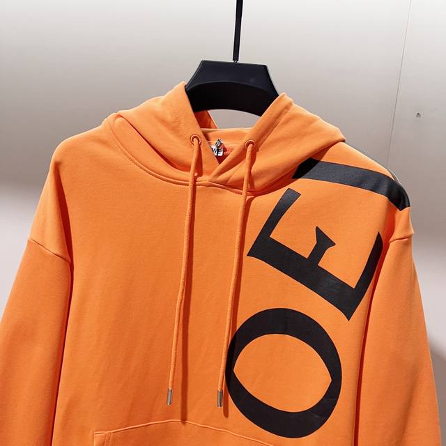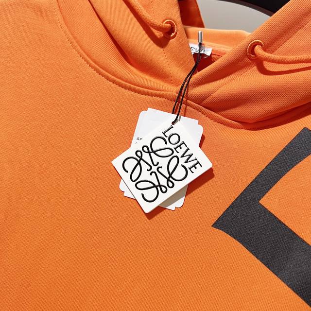 Loewe 420g 100% Cotton Hooded Sweatshirt, One-Piece, Shoulder-Wrapped, Printed Large Logo, High-Quality Official Version, Stylish, Versatile, Trendy, Original Quality Fabric, Complete with Hangtag, Neck Label, Washing Label, and Three Tags. Colors: Black, White, Green, Orange. Sizes: XS-L.