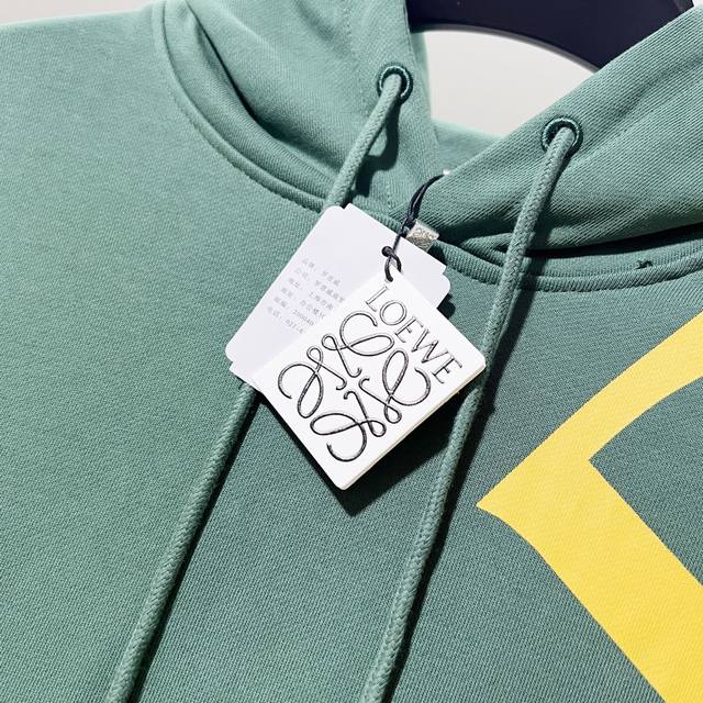 Loewe 420g 100% Cotton Hooded Sweatshirt, One-Piece, Shoulder-Wrapped, Printed Large Logo, High-Quality Official Version, Stylish, Versatile, Trendy, Original Quality Fabric, Complete with Hangtag, Neck Label, Washing Label, and Three Tags. Colors: Black, White, Green, Orange. Sizes: XS-L.