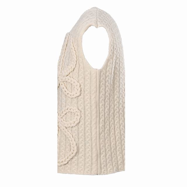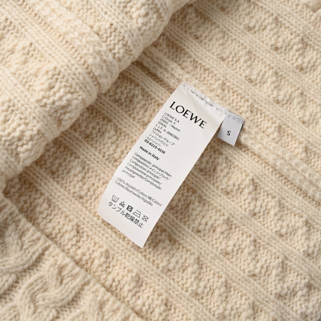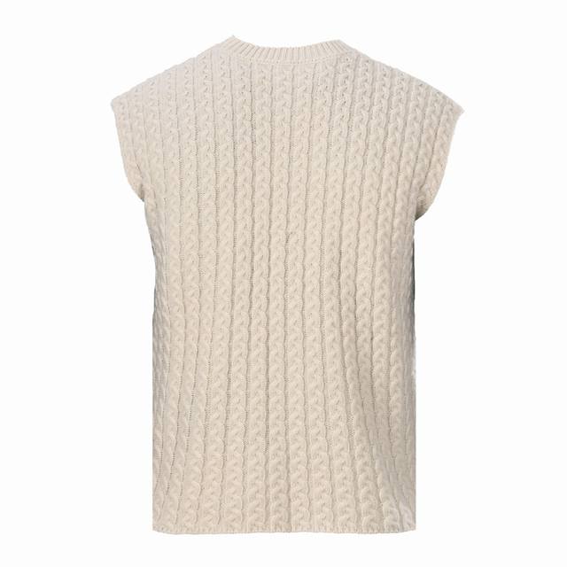 Loewe Anagram Cable Knit Sweater Vest (Ddd) Made of custom-knitted mercerized wool embossed knit fabric, thick and sturdy, with a hand-cranked embossed pattern process. The entire garment uses a twisted rope and webbing composite knitting technique, with each row hand-joined. Each row requires three steps: twisting the rope, inserting the webbing, and resetting the needle bed. Knitting one garment requires a total of 200-300 rows, which is time-consuming, labor-intensive, and expensive. The garment undergoes a washing and softening process, using professional washing equipment and specific detergents for deep cleaning and deodorization, improving the feel and appearance of the garment. Loose fit (Ddd) Size: S-XL (DDD)
