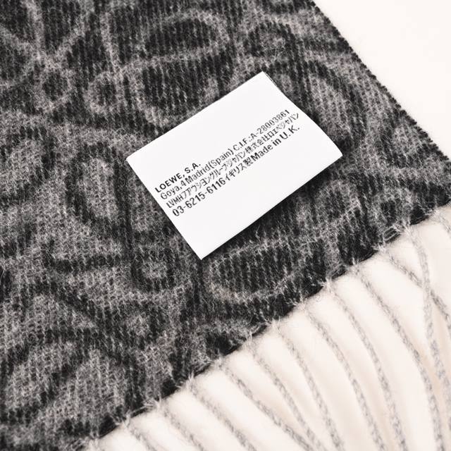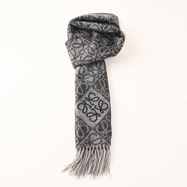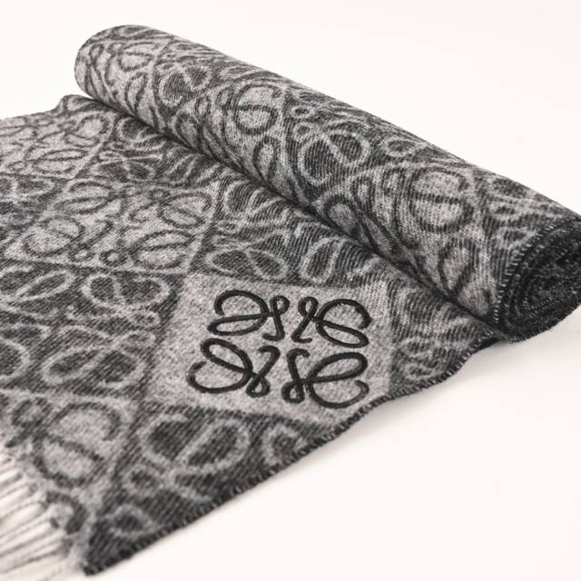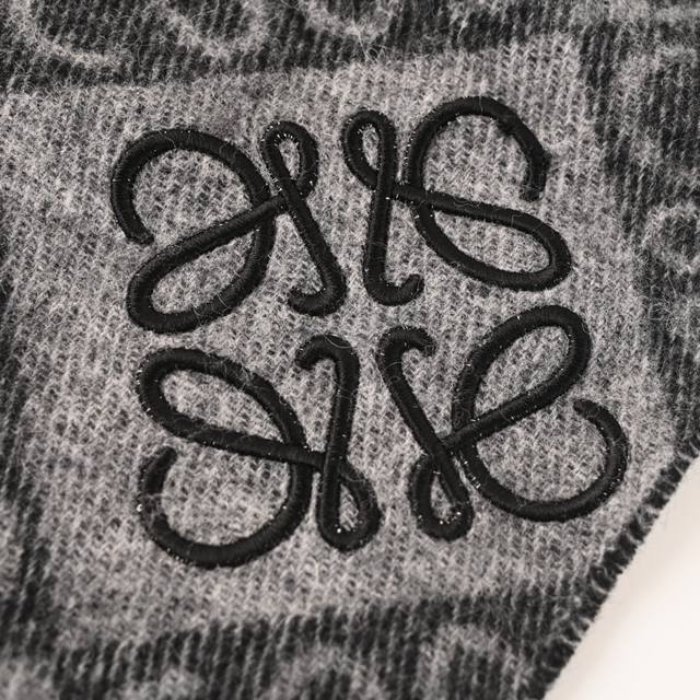 ). High-quality flocked version with Anagram tufted embroidered logo at the corners, adorned with a two-tone Anagram jacquard pattern. The milk tea color makes this scarf a best-seller, known for its exceptional fit. It's absolutely unbeatable on the market; I can say that only ours uses 18-count Bassula wool, with a slightly flocked finish on both sides, resulting in a soft, skin-friendly, and non-itchy texture. The flocked embroidered logo ensures both the quality of the scarf's pattern and its comfortable feel against the skin. We truly embody the spirit of craftsmanship in the textile industry. It's absolutely perfect for autumn and winter. Composition: 90% Bassula Wool, 10% Cashmere (