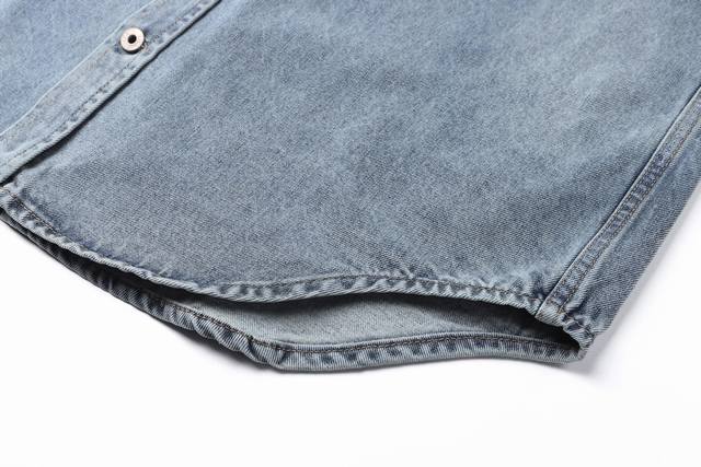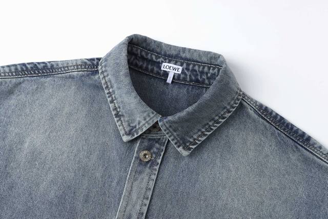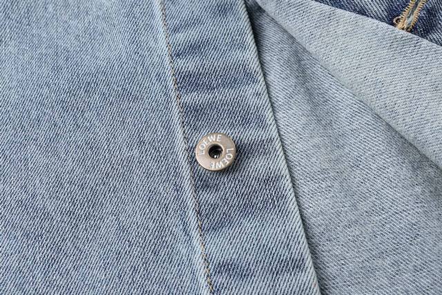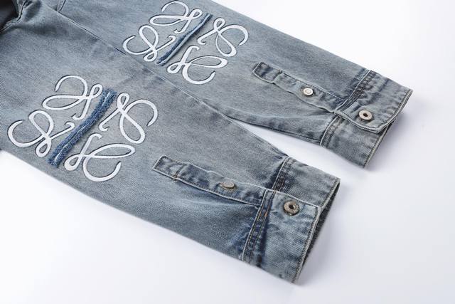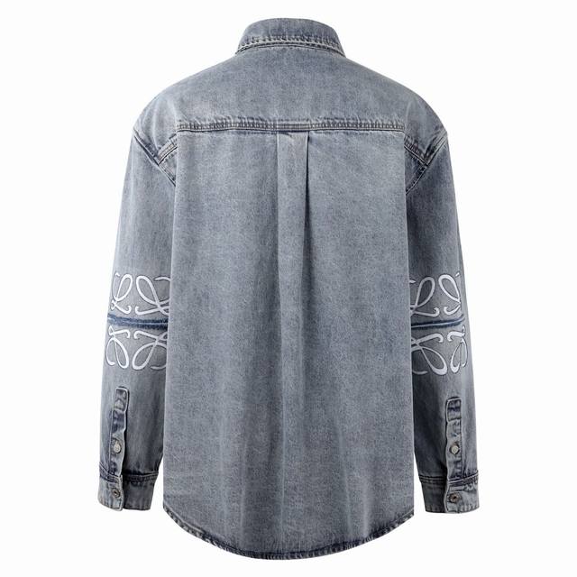 Loewe Anagram Laser-Engraved Distressed Washed Shirt Jacket. Original version purchased for 11,900 and developed from there. Fabric is custom-dyed 12*12 denim. Finished garment with distressed wash, laser burn-in, artificial monkey detailing, custom 1:1 replica buttons, custom 1:1 replica label, relaxed fit, straight and delicate stitching, soft and comfortable fabric, consistent color for a stylish look, suitable for various occasions, custom accessories, complete with tags, unisex. Size: 46-48-50-52.