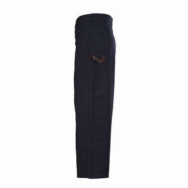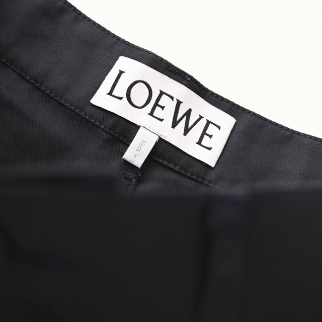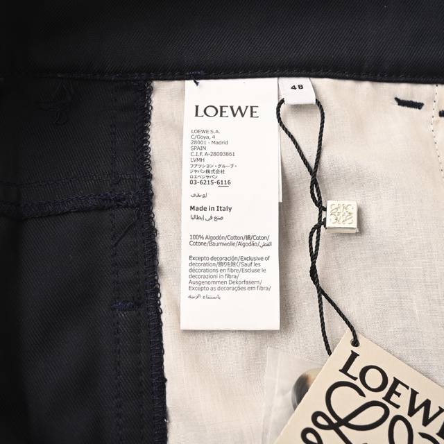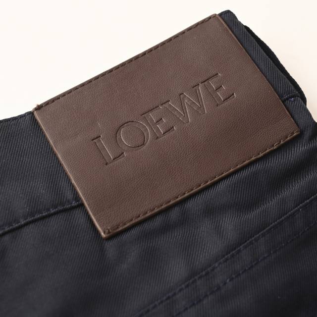 Loewe Cotton Twill Work Trousers (Ddd) Made from 100% cotton, these lightweight cotton twill fabrics are crafted using a shuttle loom that weaves the warp and weft yarns together to create the twill weave. The cotton material provides excellent breathability and a comfortable feel against the skin, while the twill weave results in a tight fabric structure, a premium feel, and easy care. By actively managing the shrinkage potential of the cotton fibers, the fabric achieves a transition from volatile to stable, improving dimensional stability and reducing deformation and wrinkles. Features embossed leather patches, engraved with brass molds to create a relief-like three-dimensional effect with a depth error of less than 0.05mm. The edges are beveled at 30