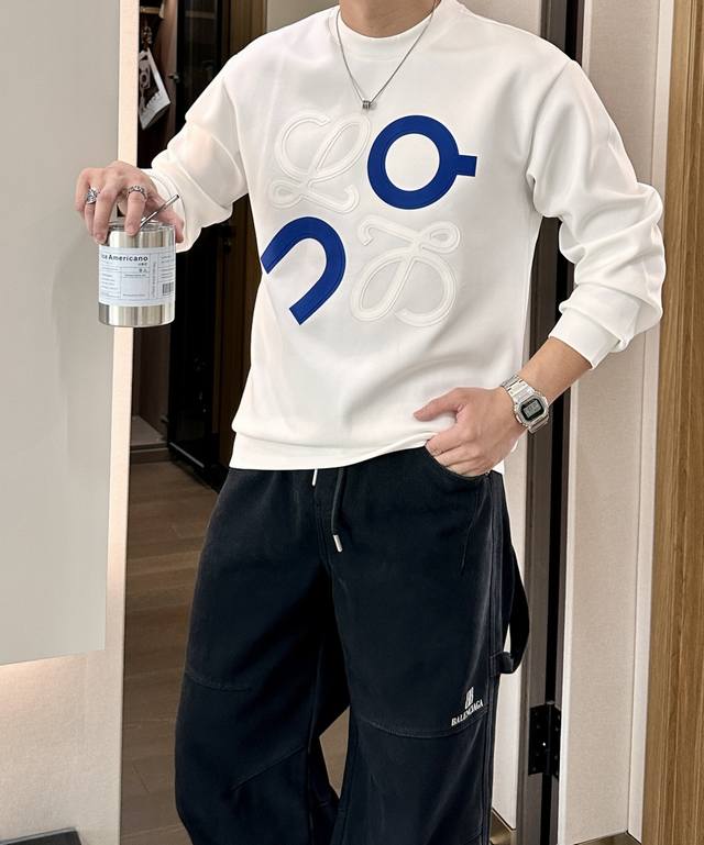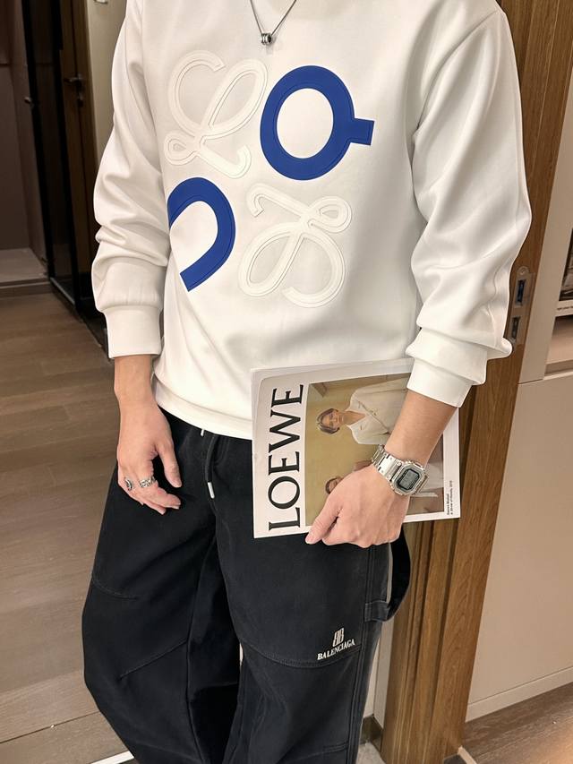 Loewe Crew Neck Pullover Sweatshirt; Classic unisex pullover style, a simple and stylish piece, understated luxury, and versatile! Made from 100% high-weight cotton fabric supplied by our customers, the sweatshirt features a tightly woven and incredibly soft, skin-friendly lining, with a neat and orderly arrangement. The fabric is exceptionally soft, delicate, and comfortable to the touch, boasting top-tier quality! Understated yet highly recognizable, it showcases the brand's unique fashion appeal! The standard unisex fit is incredibly versatile and easy to wear, suitable for both men and women, creating a minimalist and trendy look. Sizes: XS-L
