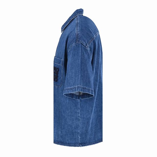Loewe embroidered pocket denim short-sleeved shirtCustomized cloud-sense water-r