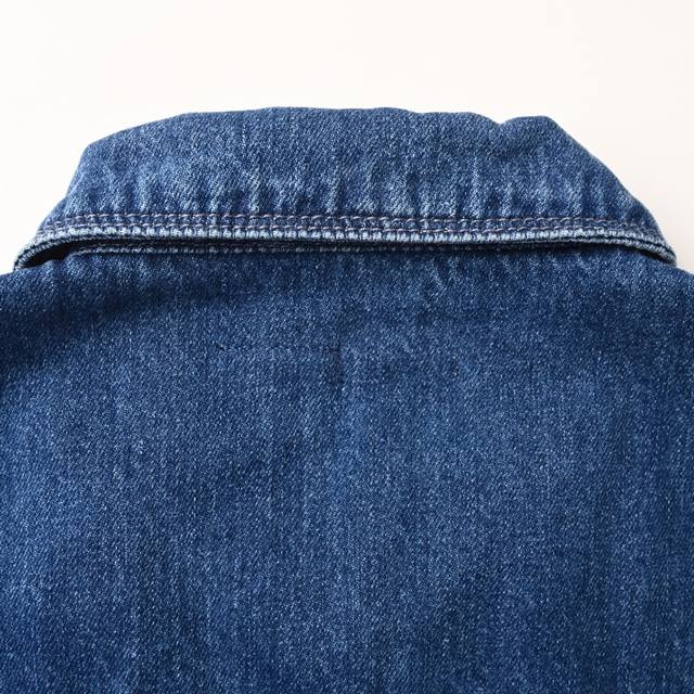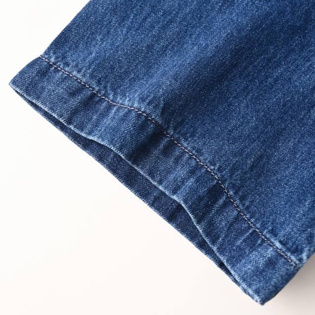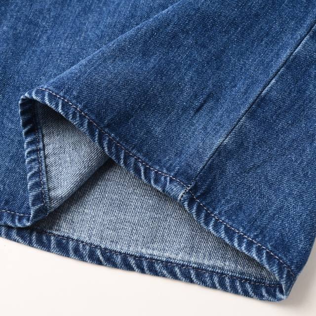 Customized cloud-sense water-rhythm cotton denim, using imported machine water-soluble embroidery technology. After the embroidery is completed, the water-soluble material is dissolved and removed by washing, presenting the plush texture of the edges. The sand-fried hand-rubbing technology is used. Through processing on a sand-fried machine, the surface of the denim material will naturally fade and wear. Then, special tools are used to physically damage the surface of the jeans by hand. A special solution of fried snowballs and fried salt is added with a certain amount of dye. The denim material is soaked in it to absorb the solvent, and then rubbed and dried to cause further fading and oxidation. Custom accessories, loose version