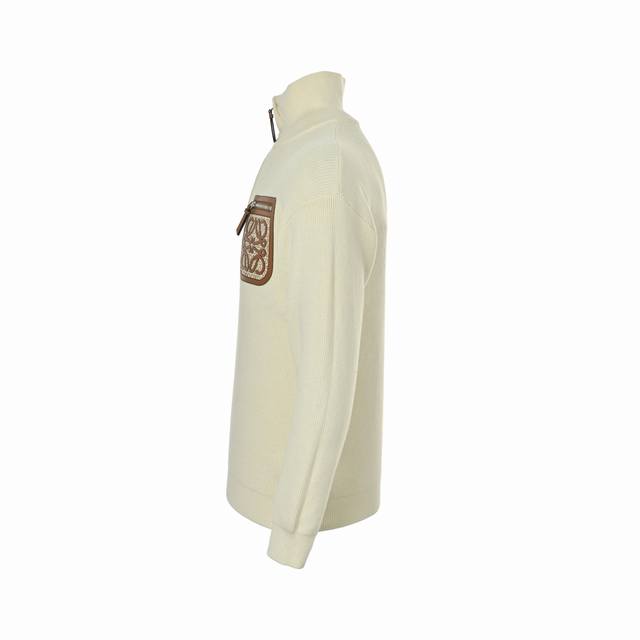 Loewe Half-Zip Sweater with Tapered Pockets. This new Loewe sweater features combed yarn for a comfortable, breathable feel against the skin. The crew neck is both gentle and sophisticated, while the turtleneck offers a more assertive look. The half-zipper provides a space for breathing. That silver zipper is not only functional but also a matter of proportion. Pulling it to the collarbone creates a crisp, ready stance; pulling it all the way down reveals a casual turtleneck, like a sudden decision to embark on a journey. It understands when to provide a barrier and when to relax, forming a V-shape that makes the face the focal point. A half-door, open and closed as you please. Style and warmth don't have to be mutually exclusive. We've chosen a heavy alloy zipper; every tooth is precision-forged from copper-nickel alloy, ensuring durability. The chest pocket features the classic Loewe logo combined with imported leather, creating a layered and unique visual effect. Ddd Size: M-Xxl DDD