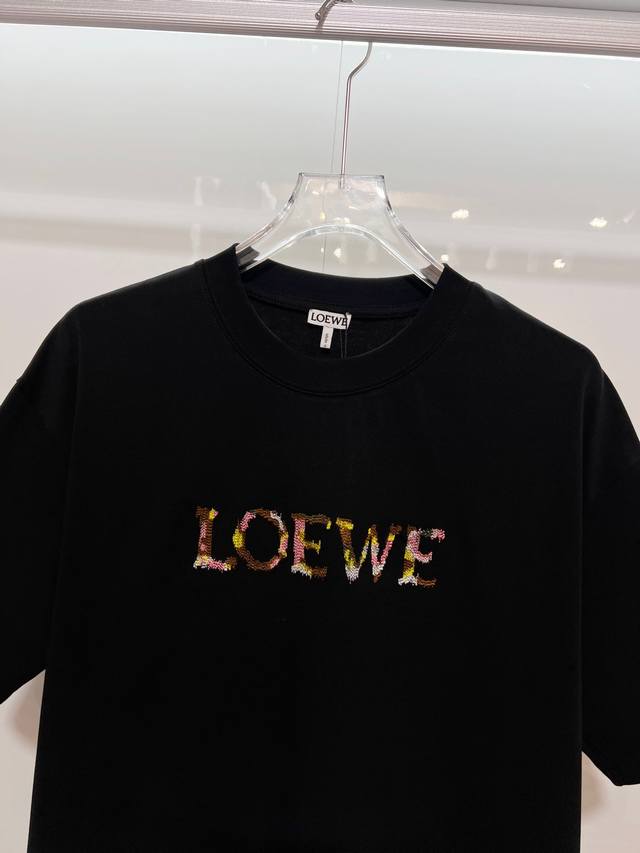 Loewe High-Quality 320g Crew Neck Short Sleeve T-Shirt. Classic and simple color-blocked embroidered logo. 2026 Spring/Summer official version, high quality. Stylish, versatile, and trendy. Original quality fabric. Complete with hangtag, neck label, and wash label. Colors: Black, White. Sizes: S, M, L, XL.