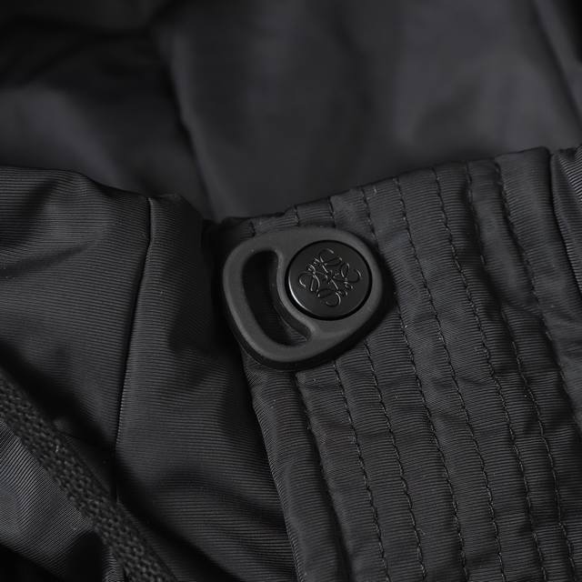 Loewe High-Quality Hooded Down Jacket. Features high-quality, evenly filled down for excellent warmth. Meticulous attention to detail, excellent stitching with even, fine stitches, and no skipped or missing stitches, showcasing superior craftsmanship. High-quality materials are used for zippers, buttons, and other hardware. Unisex style. Color: Black. Size: S, M, L, XL.
